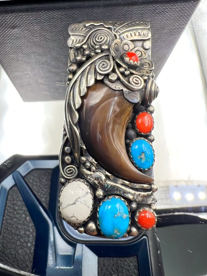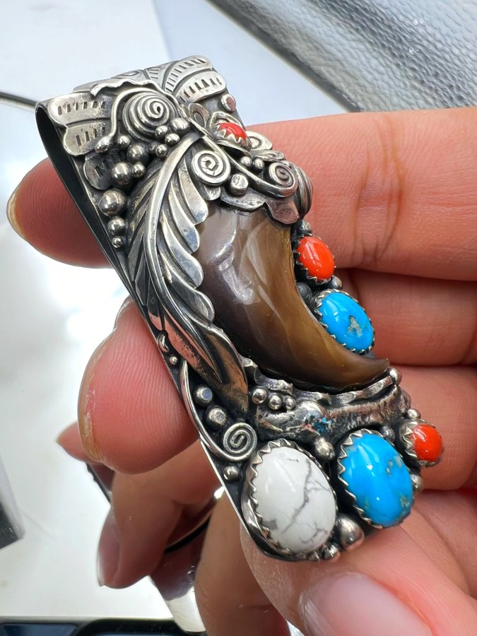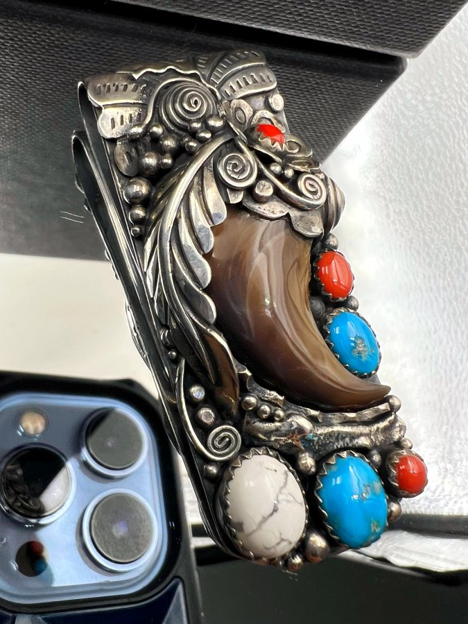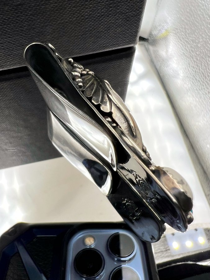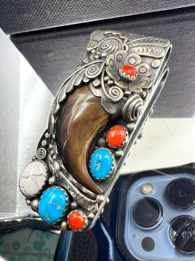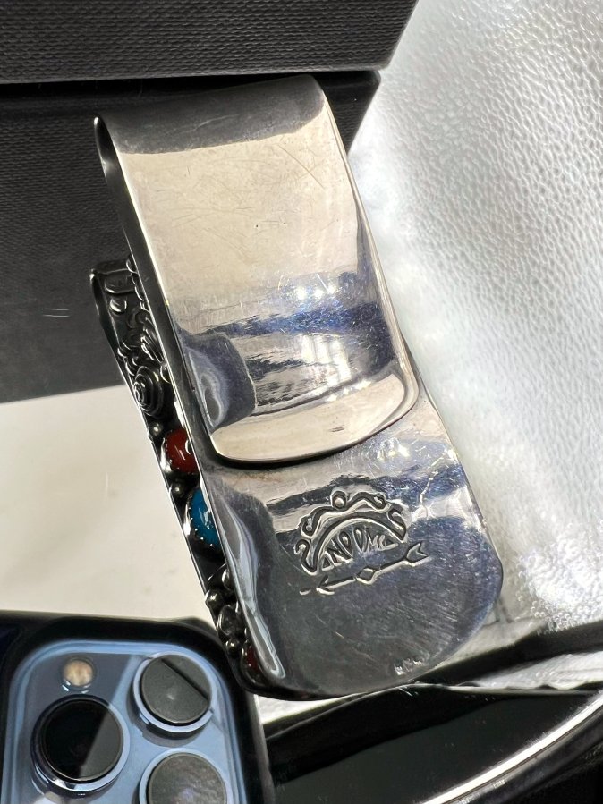 Kẹp tiền bạc 925 Navajo hiệu Noom mới tinh hoa văn sắc nét đính đá ngọc lam - ******* đỏ rất đẹp, size 23x55mm, nặng 28.72gram (7.66 chỉ), giao thông 4tr5❤️ Thiên 0923.12.6789