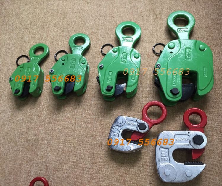 - Tải trọng: kẹp tôn đứng có loại 1 tấn, 2 tấn, 3 tấn, 5 tấn. Kẹp tôn ngang có các loại 1 tấn, 2 tấn, 3 tấn
