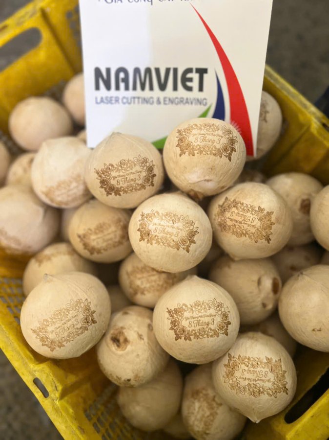 Những trái dừa tưởng chừng quen thuộc nay trở nên đặc biệt hơn khi được khắc laser tinh xảo. Logo, tên sự kiện, ngày kỷ niệm hay lời chúc đều có thể khắc trực tiếp lên vỏ dừa một cách sắc nét – tự nhiên – ấn tượng.