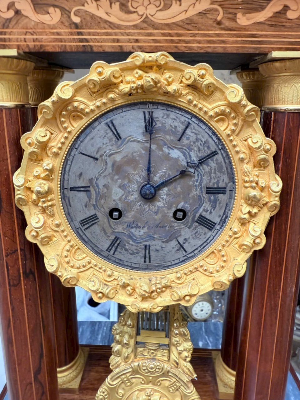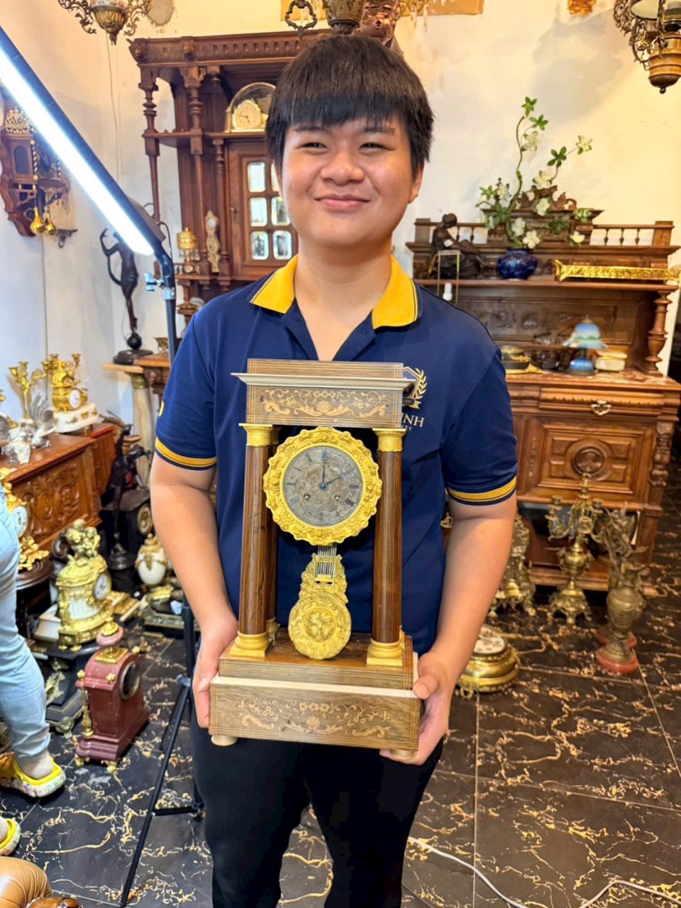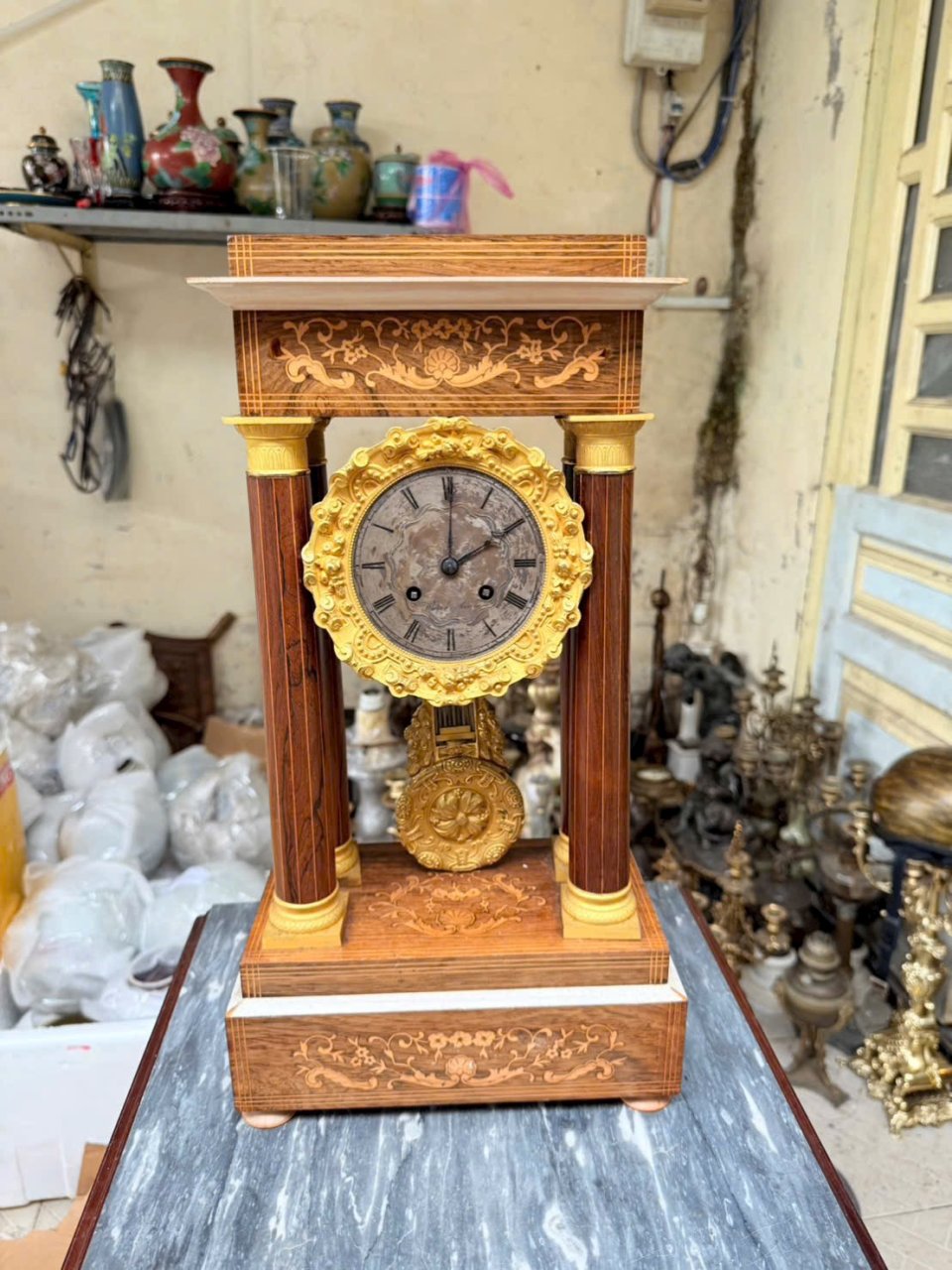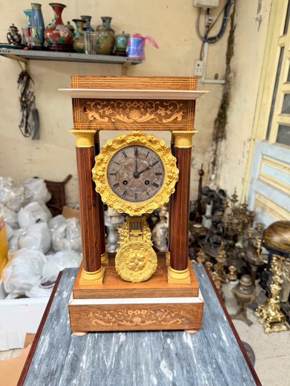 Khải Hoàn Môn Pháp chuẩn cổ trên 100 năm,gỗ khảm hoa văn chìm,kiềng đồng mặt và lắc lacke vàng nước vàng còn tuyệt đẹp,mặt có chữ kí spa lại là đẹp giá mềm Gia 6tr8 Call:0333534345