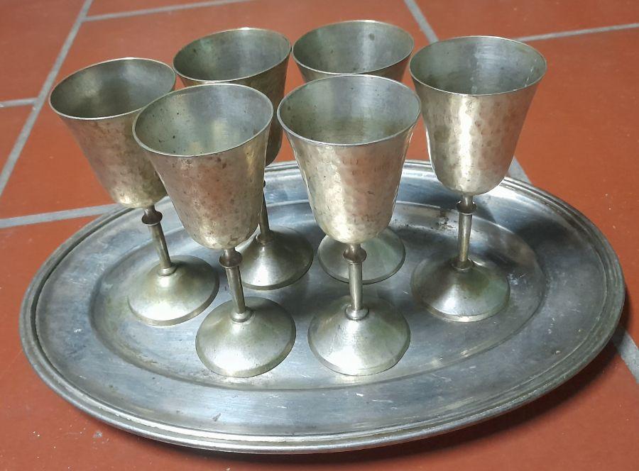 Số 2. Bộ khay & 6 ly Nikel bạc hàng Tây xưa, đẹp...