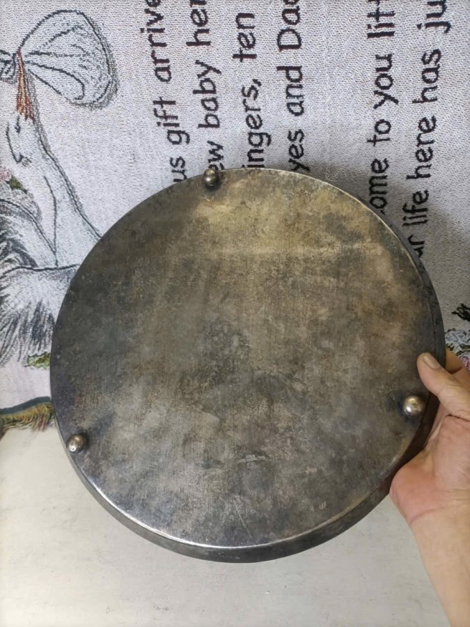 Khay đồng lacke bạc ENGLAND , lành kg lỗi , nguyên bụi hàng công châu âu về , dầy nặng chắc chắn đk 35cm, cao 3 cm