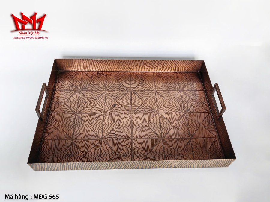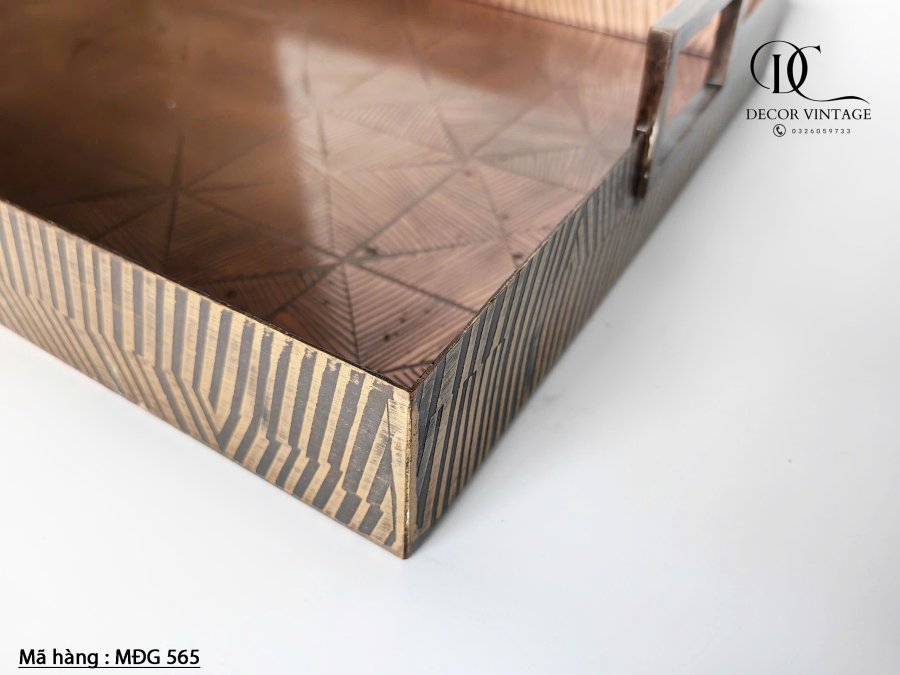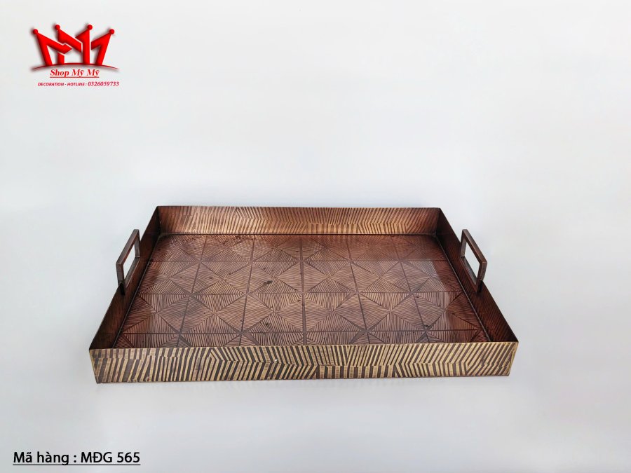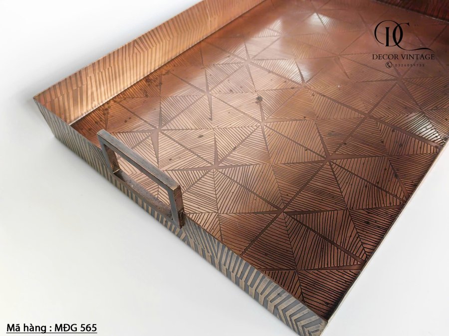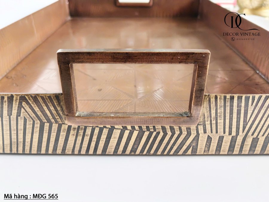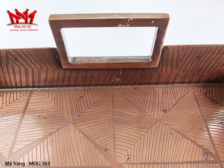Khay bằng đồng có khắc họa tiết, dày và nặng
