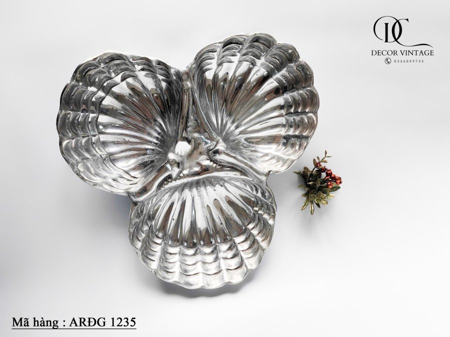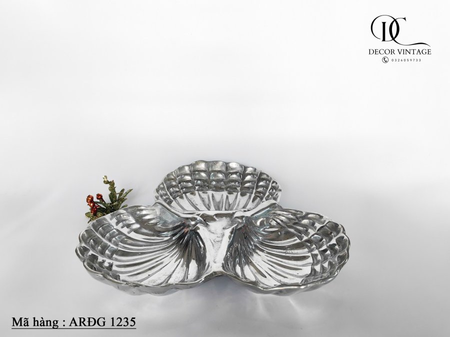 Khay đựng đồ ăn hình vỏ sò ba lớp, Trưng bày đồ trang trí trung tâm hình vỏ sò lớn, Đồ trang trí nhà bằng nhôm đúc Coastal Living.