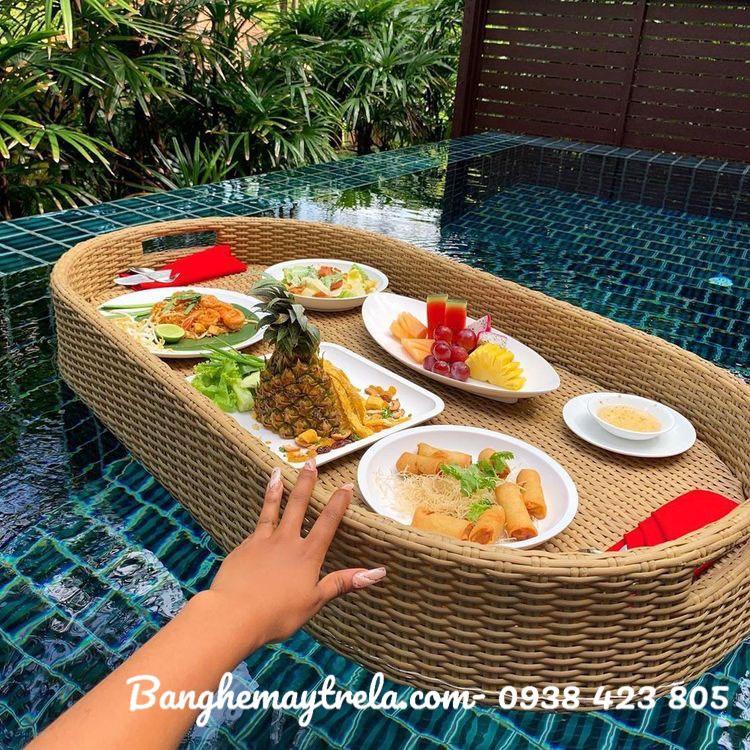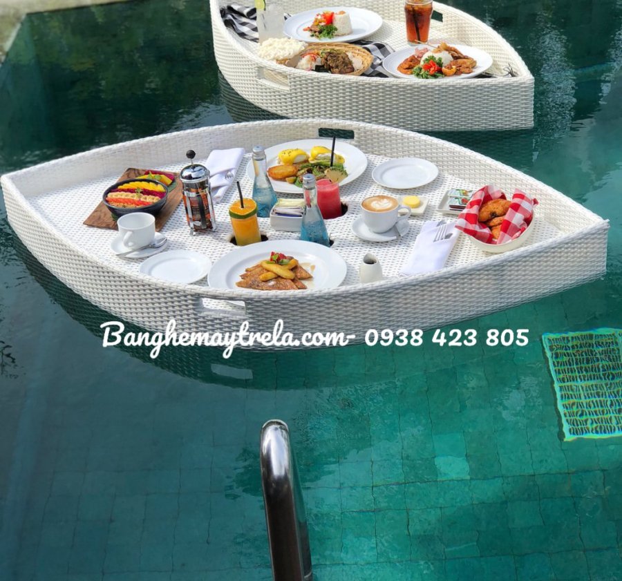 Được làm từ mây nhựa cao cấp chống nước 100%, khung xốp nổi siêu bền, giúp khay nổi ổn định trên mặt nước – thoải mái đặt đồ ăn, thức uống, trái cây, ******* vang...