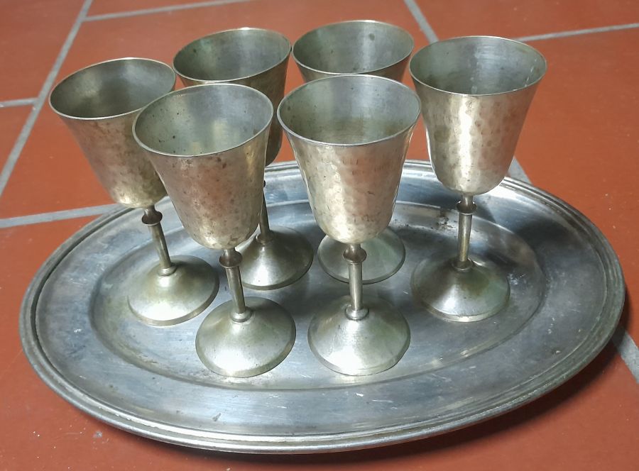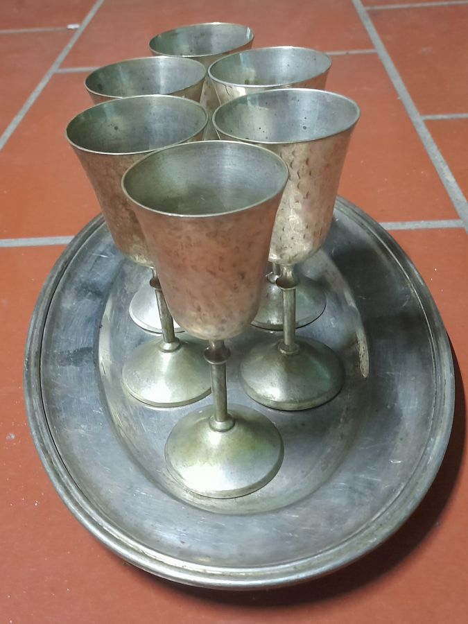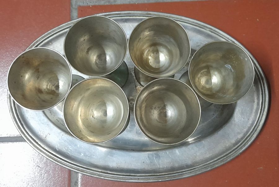 Số 2. Bộ khay & 6 ly Nikel bạc hàng Tây xưa,  đẹp...