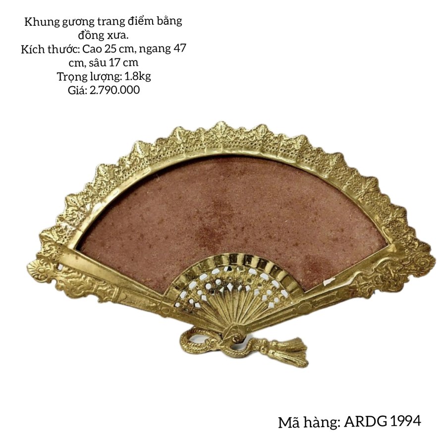 Khung gương trang điểm bằng đồng xưa. Kích thước: Cao 25 cm, ngang 47cm, sâu 17 cm.Trọng lượng: 1.8kg