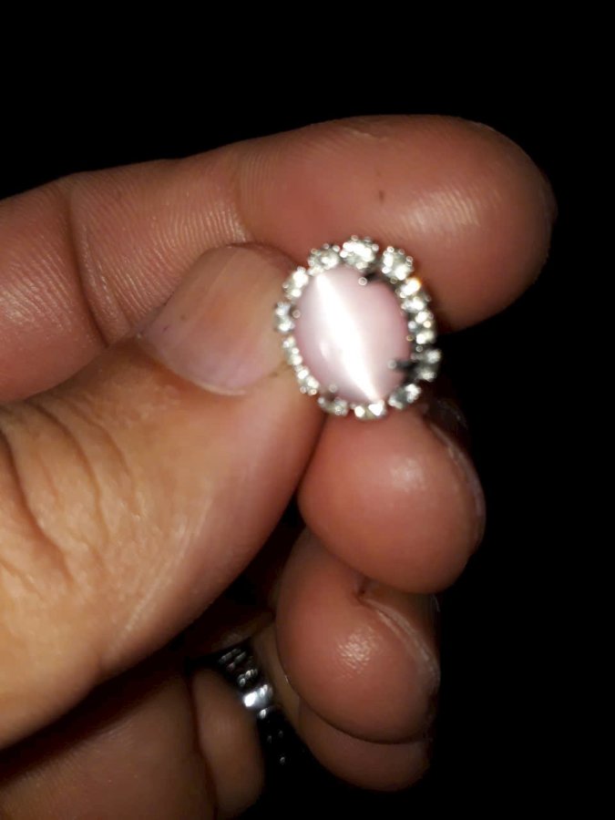 Khuyên tai lẻ đá mắt mèo hồng 120k