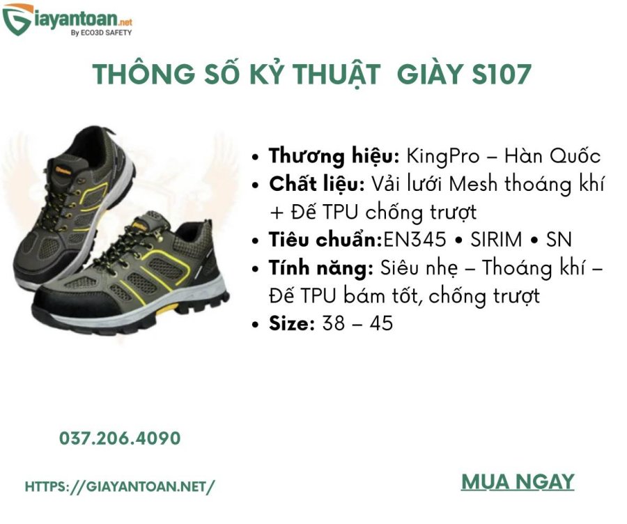 Nếu bạn đang tìm một đôi giày bảo hộ vừa nhẹ, vừa thoáng mà vẫn đạt chuẩn an toàn cao nhất, thì KingPro Galaxy S107 chính là lựa chọn hoàn hảo!