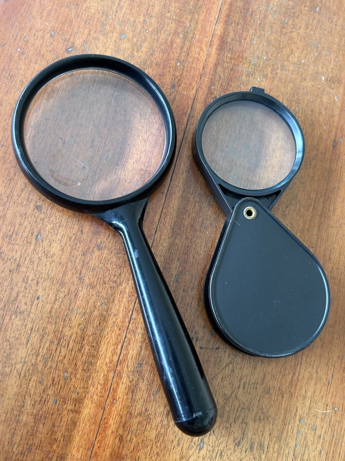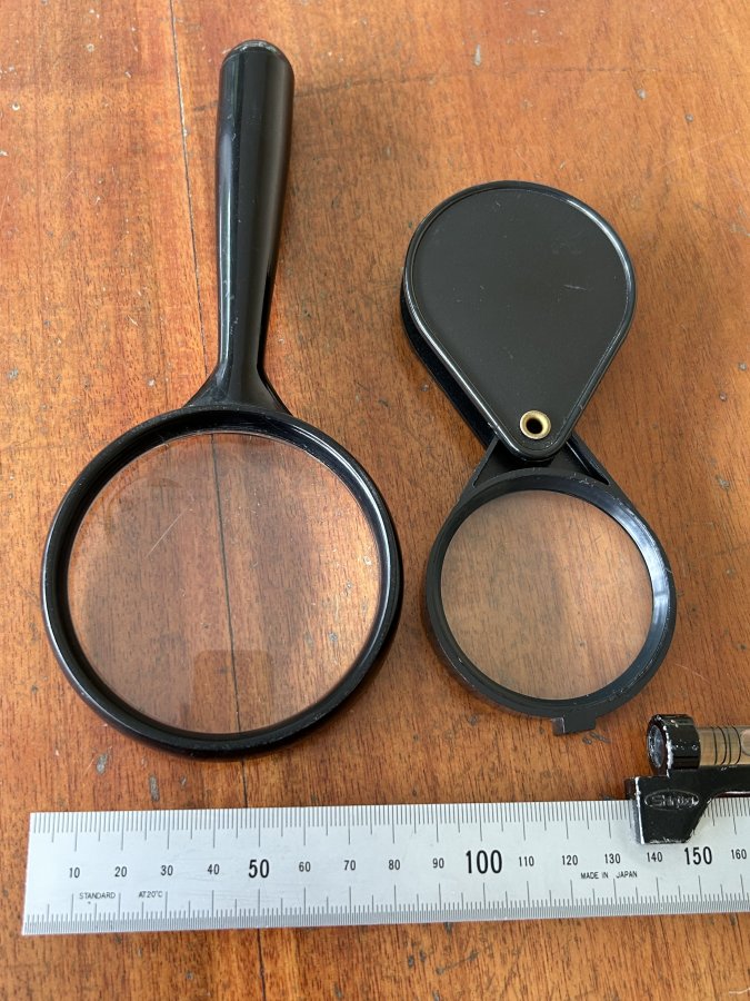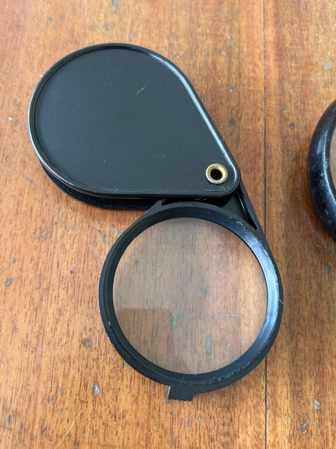 Bán bộ kính lúp hàng từ Nhật về nhưng không thấy hiệu, còn rất đẹp, như mới. Kính lớn có đường kính 80mm, có 2 vị trí phóng đại, kính gập đường kính 60mm. Tất cả không trầy xước, nhìn trong rõ