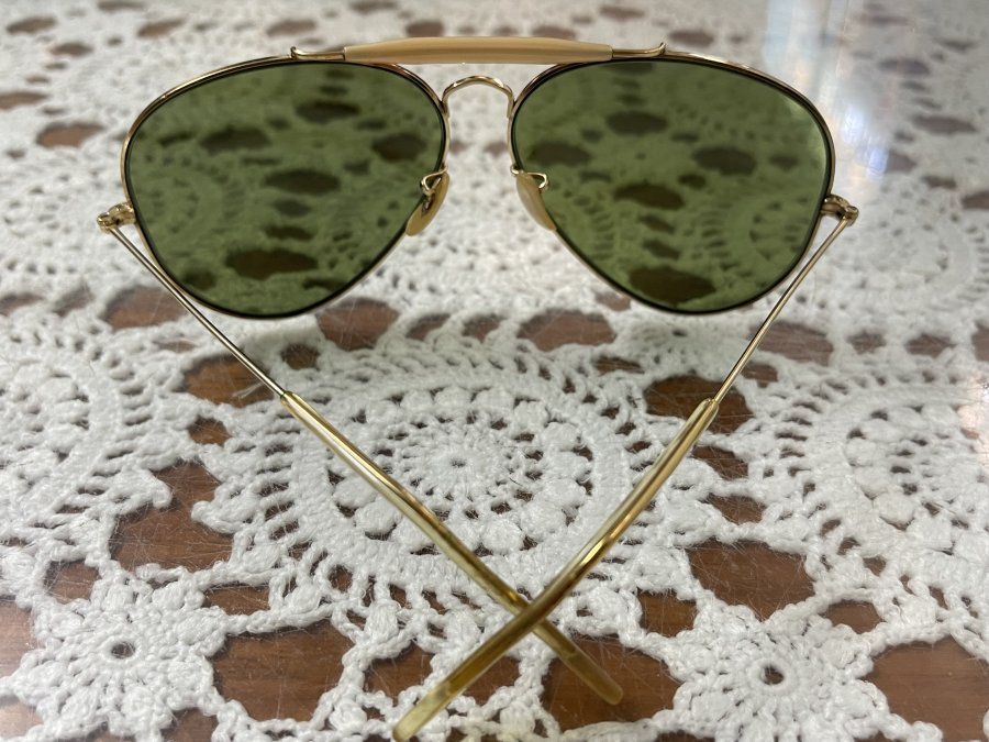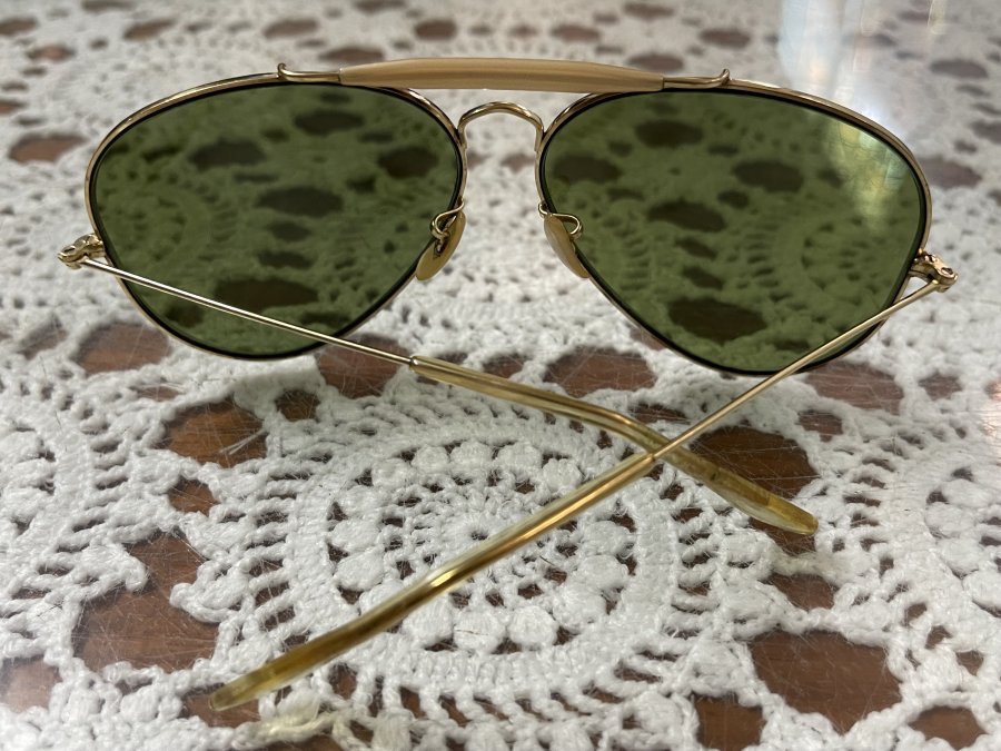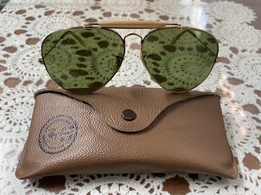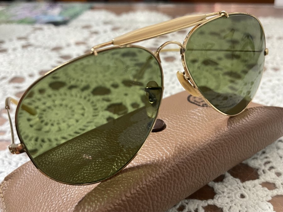 Kính mát BL. R@yb@n USA Outdoorman . 1970size 62- 14 . Mắt RB3 xanh rau muống đậm chất xưa cổ điểnNguyên zin .Bao da kính nguyên zin chính hãng RayBan.