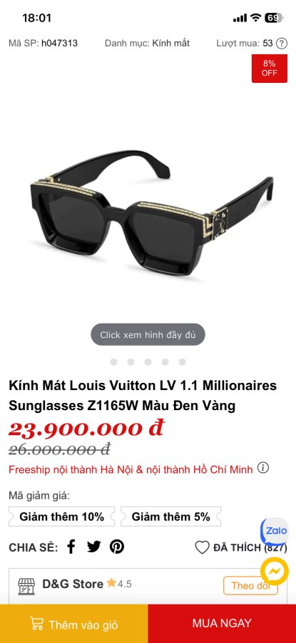🫶 Kính Mát Louis Vuitton LV 1.1 Millionaires Sunglasses Màu Đen Vàng 👉 Like new siêu lướt, đeo vài lần + Full Box 👉 Size 56 👉Ngân lượng : 11t600k ( New bán 23t900k )