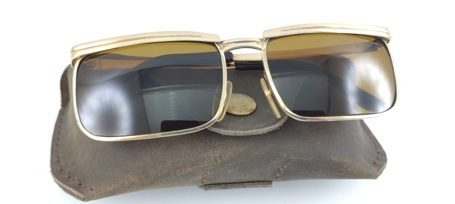 Kính mát MOREL bọc vàng dáng Solex ngang kính 13,6cm tặng bao da theo kính