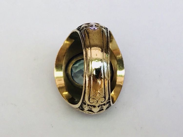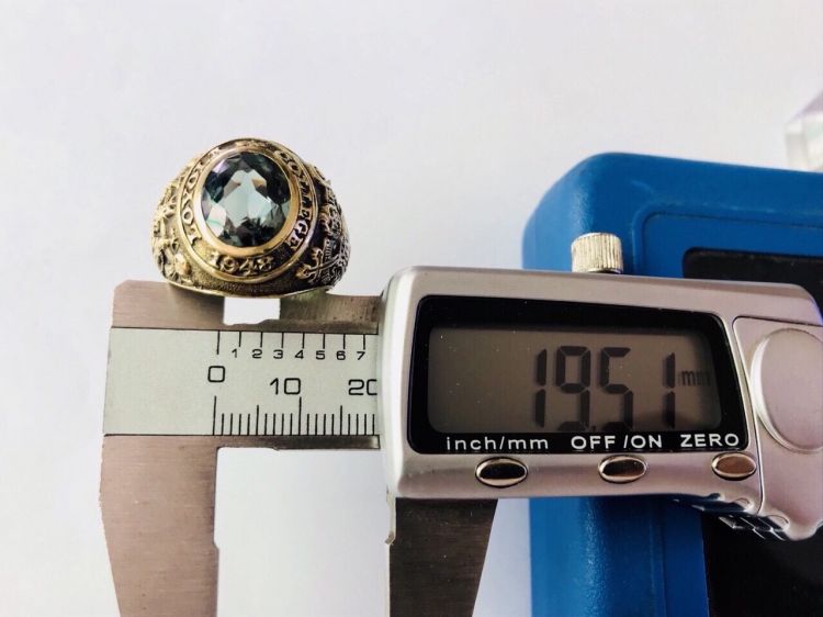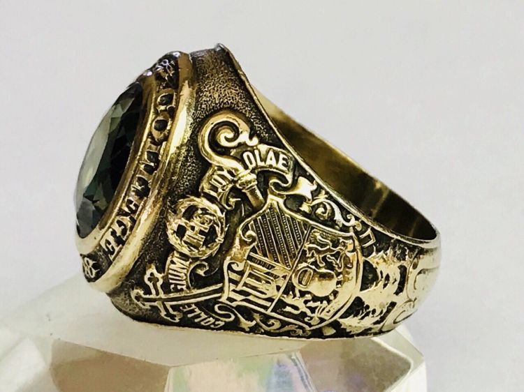 Kính phố vàng 10k. 1948 xưa phôm to ***** lõm. Hột xanh lá giác rất lửa. Size:19.5.