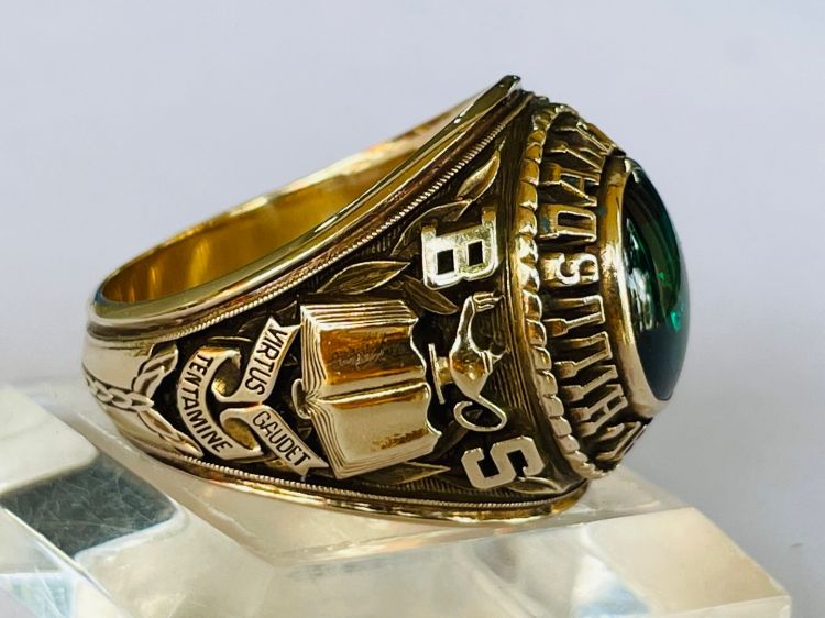 Kính phố vàng 10k. 1968 Hột xanh lá trơn rất lửa. Size:20.5. Nặng:5c04(18g 90).