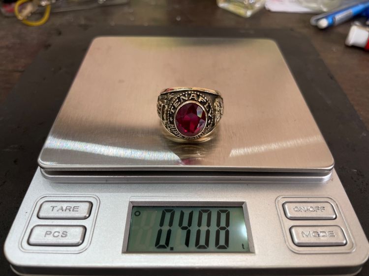 Kính phố vàng 10k. 1970 xưa có lót. Hột đỏ huyết giác rất lửa. Size:20. Nặng:4c08(15g 30).