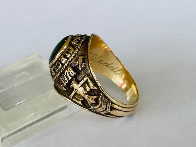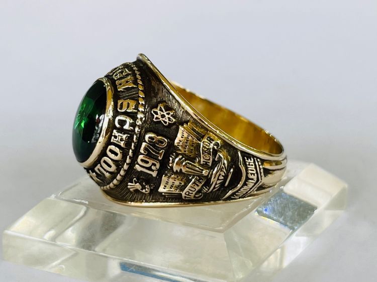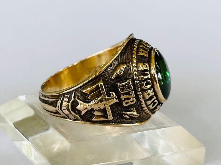 Kính phố vàng 10k. 1978 Hột xanh lá trơn rất lửa. Size:20. Nặng:3c17(11g 88).