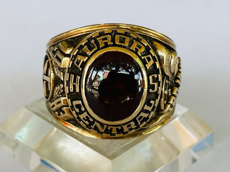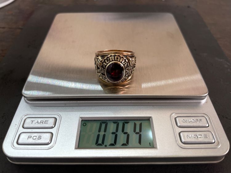 Kính phố vàng 10k. 1983 Hột đỏ huyết trơn tuyệt đẹp. Size:20. Nặng:3c54(13g 27).