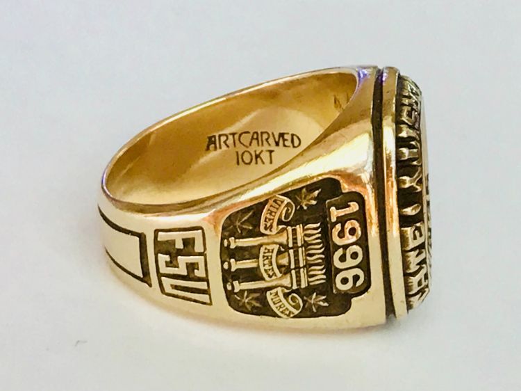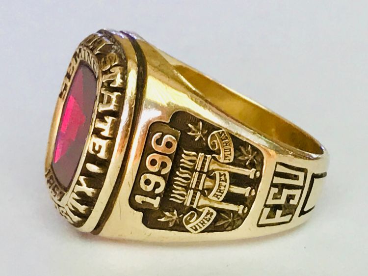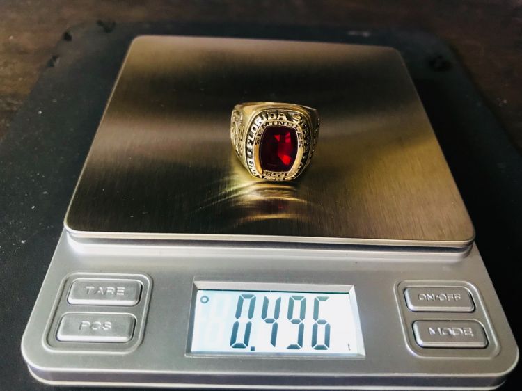 Kính phố vàng 10k. Đại học 1996 Hột đỏ huyết trơn rất lửa. Size:20.2