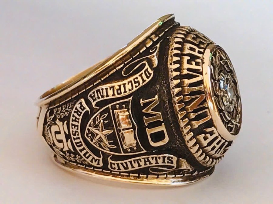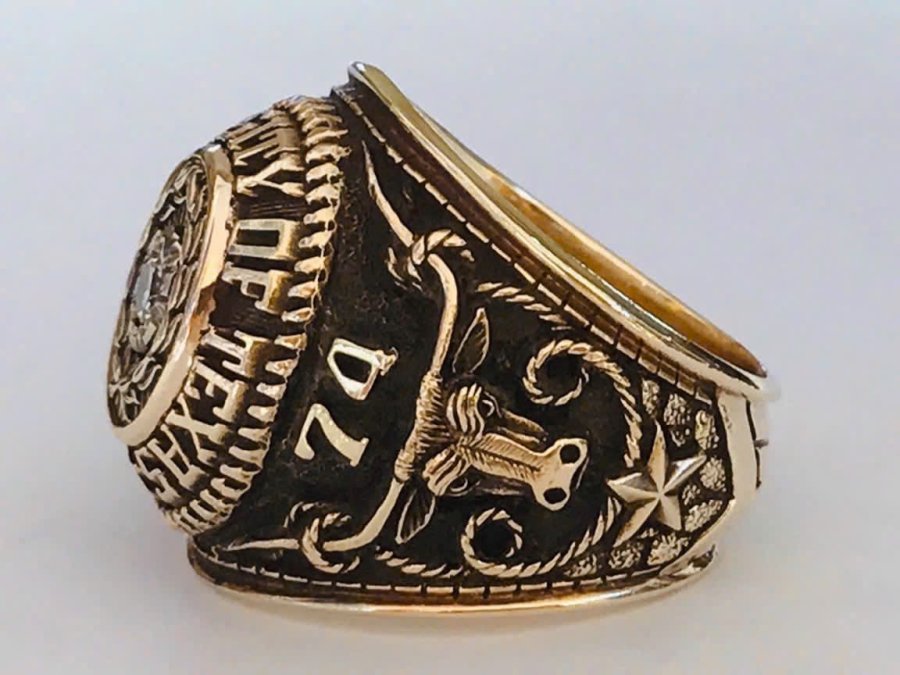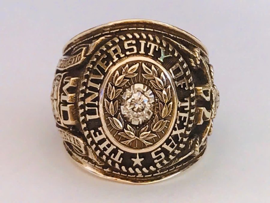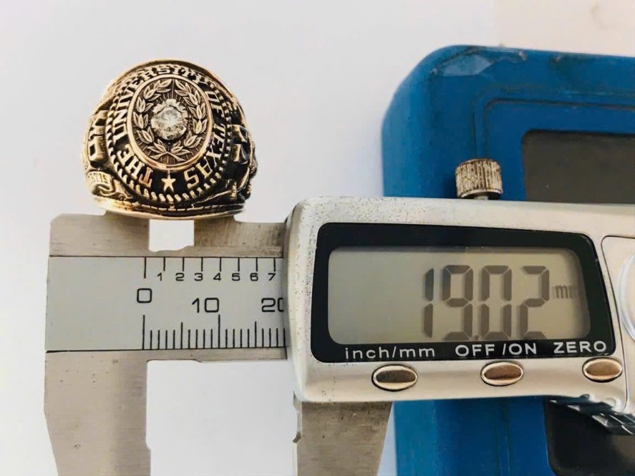Nhẫn mỹ hàng nhập vàng 10k. Đại học TEXAS 1974 phom to. Logo gắn viên xoàn thiên nhiên 3ly6 trắng và lửa mạnh. Hình ảnh thay lời muốn nói.