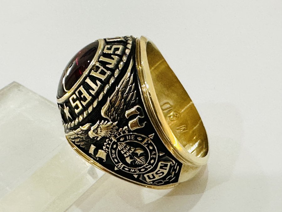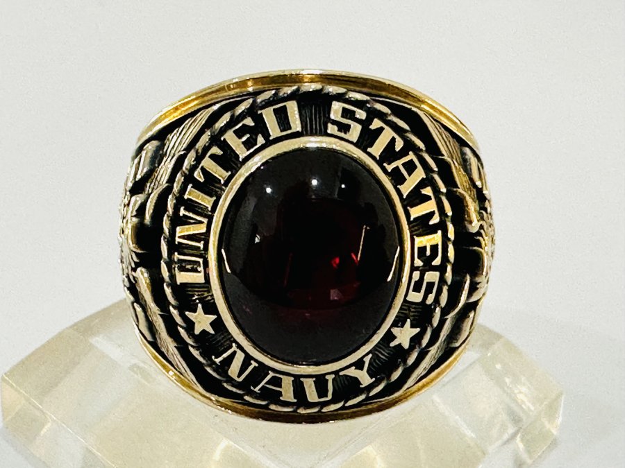 Nhẫn mỹ hàng nhập vàng 10k. NAVY Hải Quân Hoa Kỳ . Hột đỏ huyết trơn tuyệt đẹp .