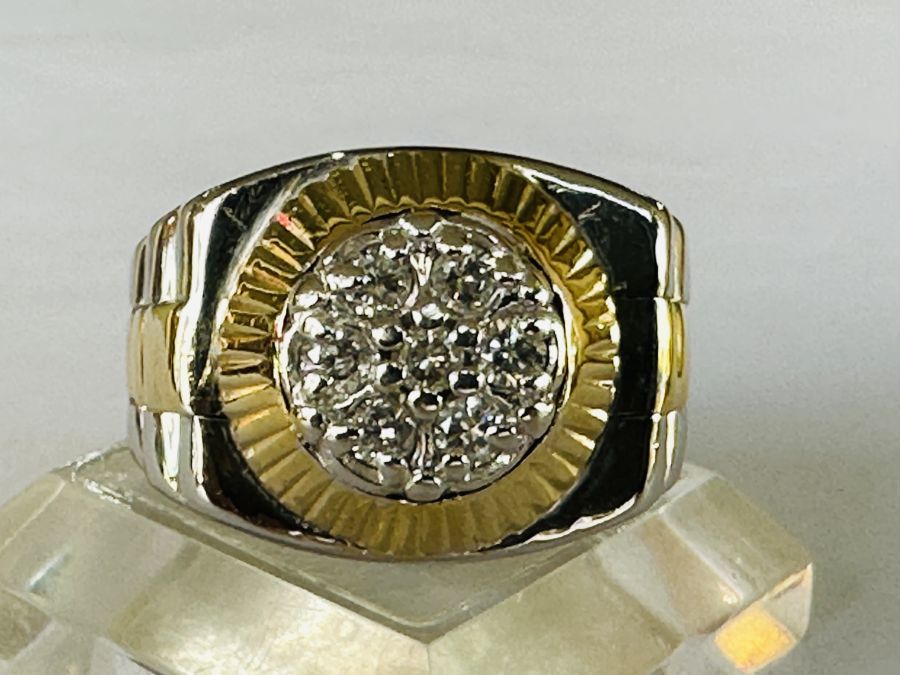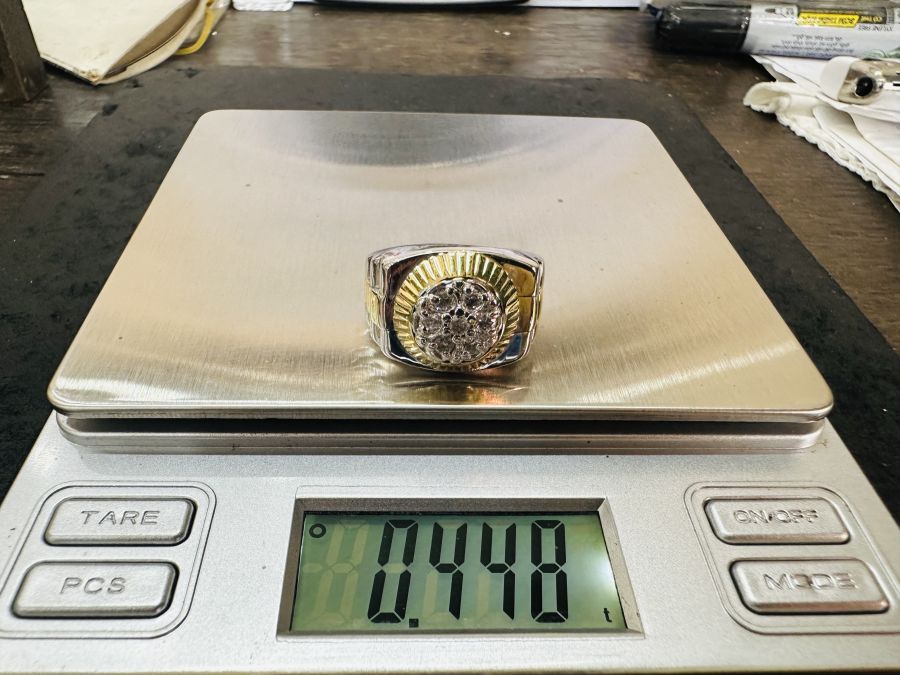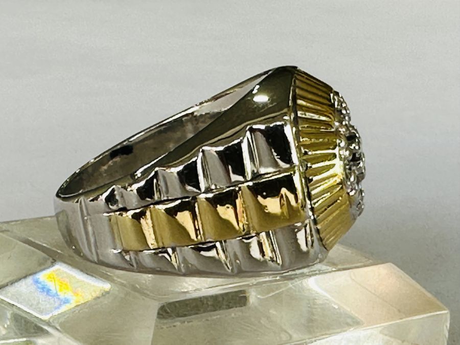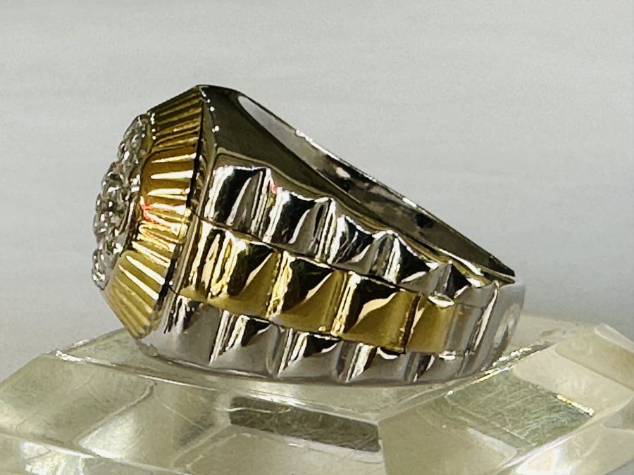 Phom nhẫn Rolex lên tay rất sang, logo gắn 7viên xoàn thiên nhiên 2ly6 trắng tinh và lửa