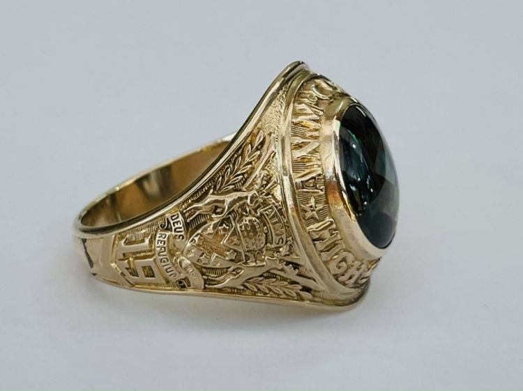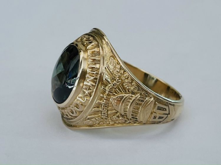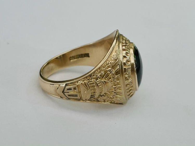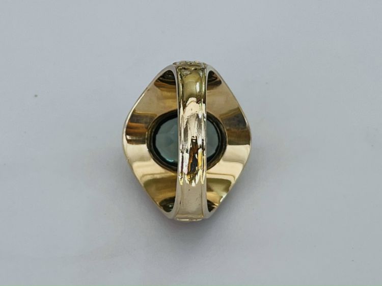 Kính phố vàng hồng 10k.1960 xưa lõm. Hột xanh lá trơn rất lửa. Size:20.5. Nặng:3c09