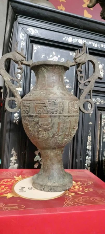 Kính phố xem giao lưu một chiếc bình đồng đã cổ