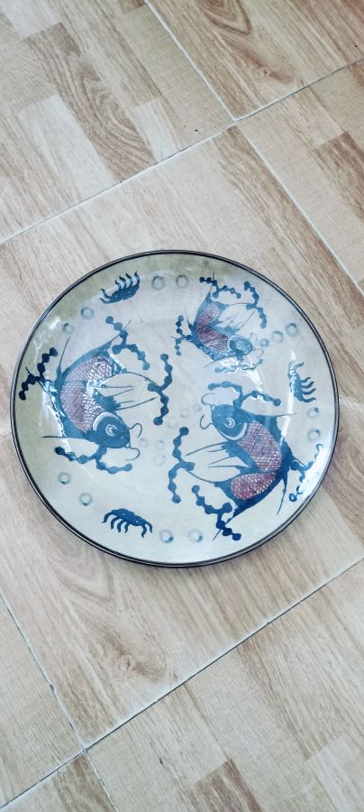 Kính phố xem giao lưu,1 chiếc đĩa vẽ cá ĐK 34cm