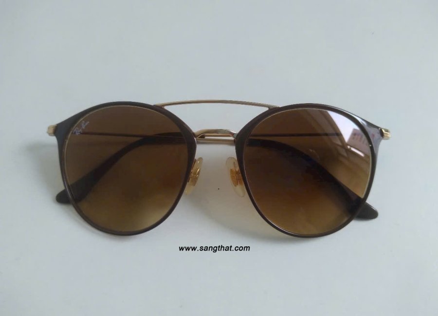 KR96 Kính râm mầu nâu và mầu vàng tây nhẹ Rayban (RB3546 9009/85) chuẩn xịn. Kính đẹp, độ mới cao, tròng đẹp gần như không xước. Kính thời trang nam hoặc nữ đều đeo được. Ngang 13.8cm cao 5cm (52-20 145). Giá mua mới khoảng gần 6tr. Bán 1.2tr