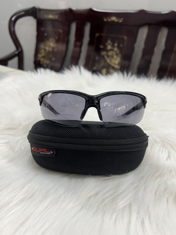 kính ngang 14cm ,loại 2 tròng , tròng nhỏ nhìn xuống có độ +1.5 . nhìn bình thường thì mát