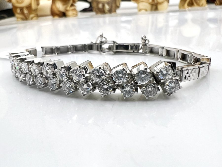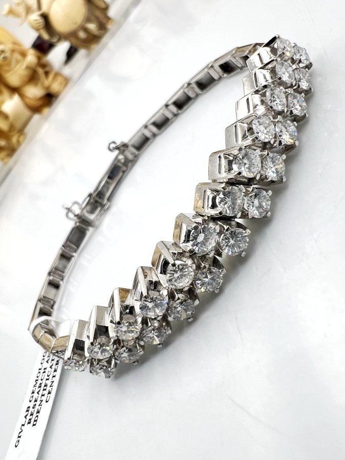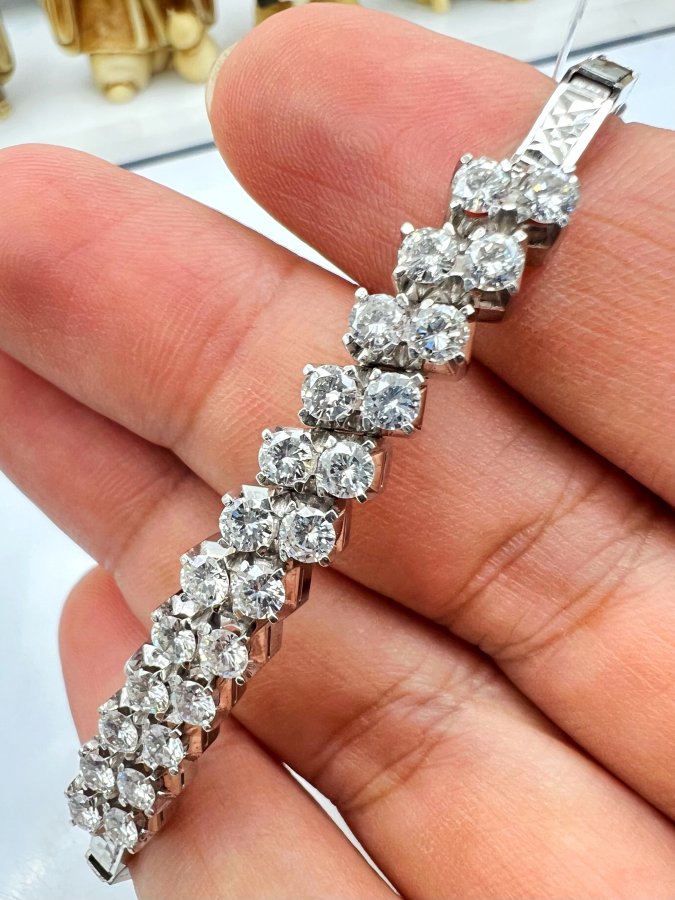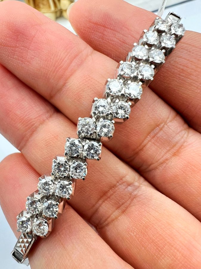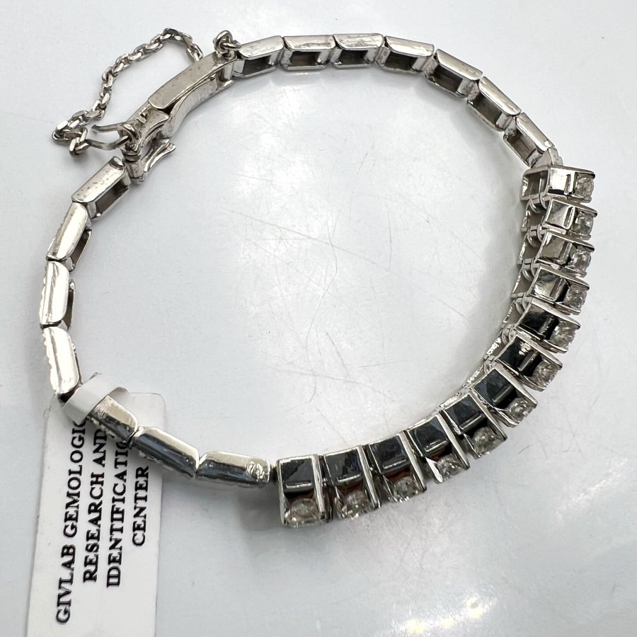 Lắc bá cấm vàng trắng 7k Nhật (27.2% vàng, 15.9% Paladi, 56.3% bạc) mới tinh đính 24v soàn thiên nhiên 3-3.3li trắng tinh rực lửa, kèm giấy giám định, khóa gài có khóa phụ, dây dài 17cm (2 nấc gài 16 và 17cm), nặng 15.16gram (4.04 chỉ), giao thông 5xtr❤
