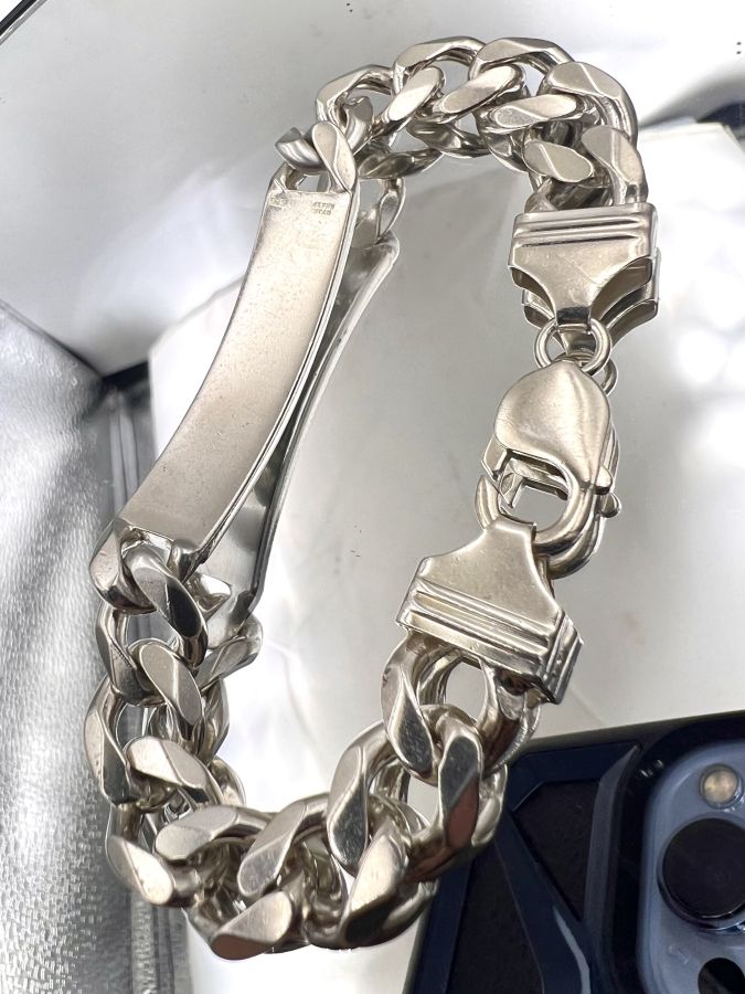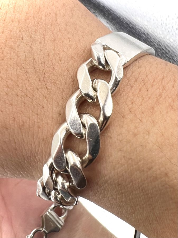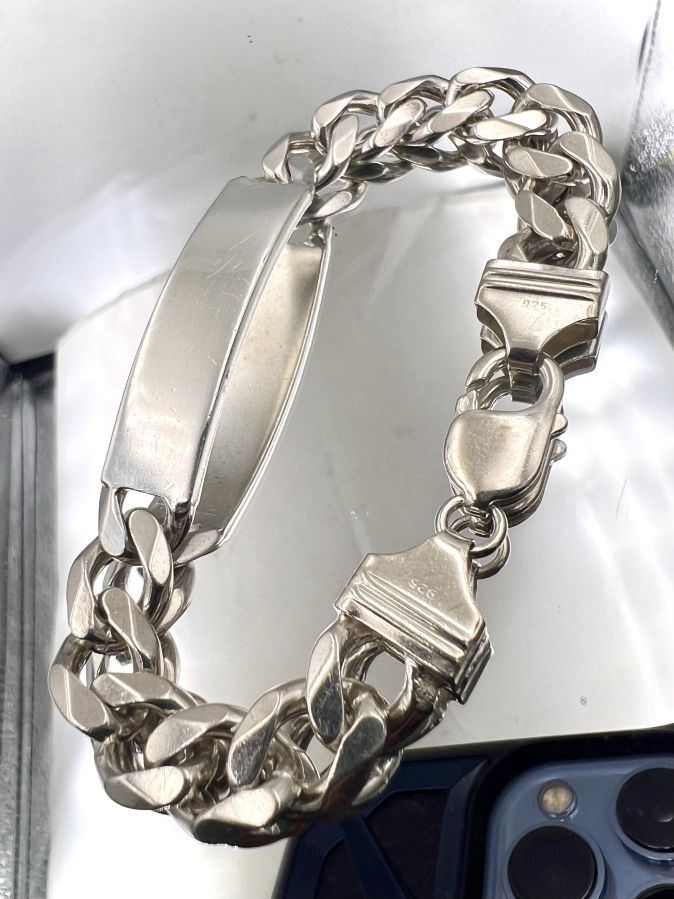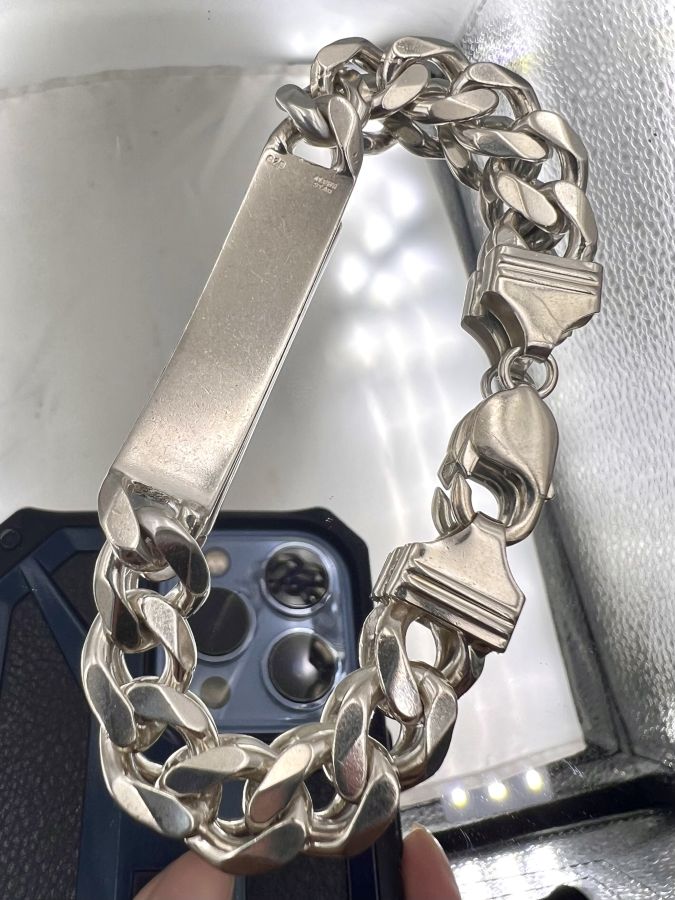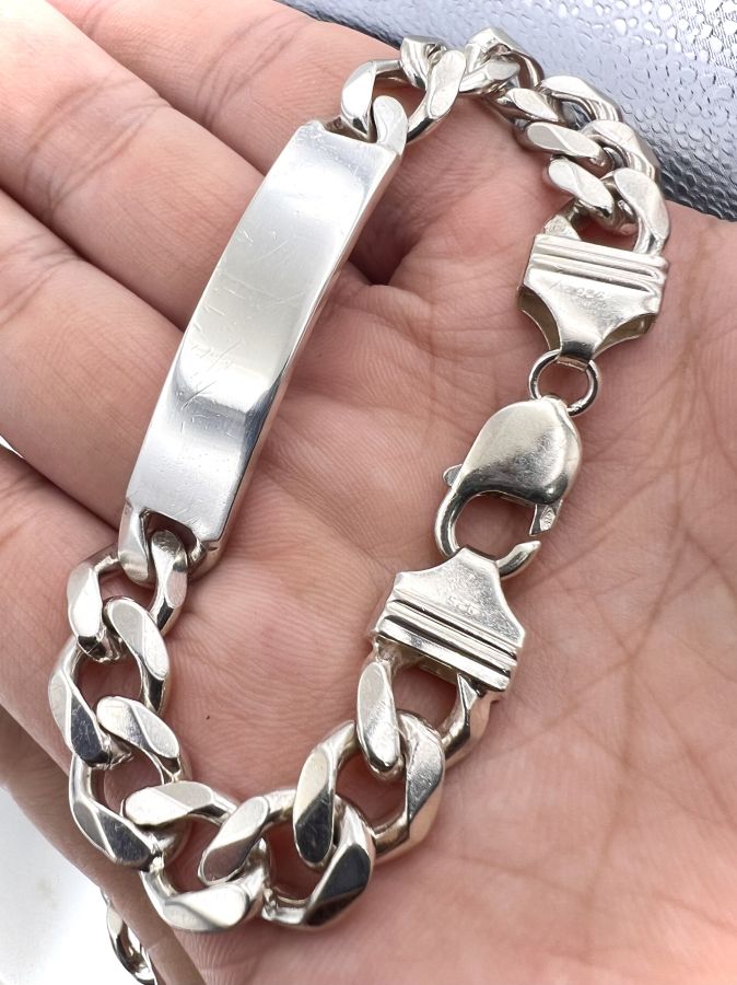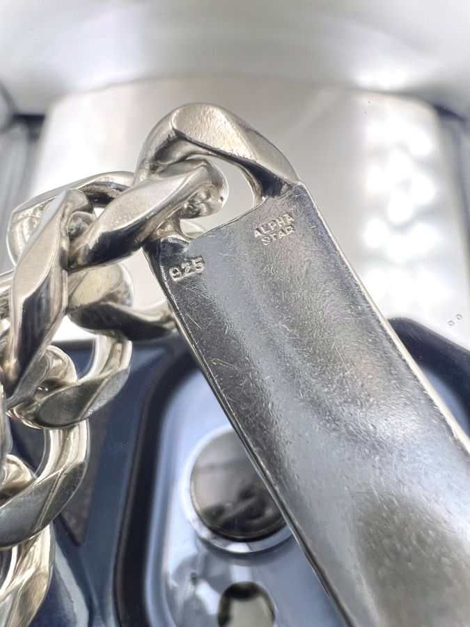 Lắc bạc 925 hiệu Alpha Star mới tinh hoa văn sắc nét rất đẹp, dây dài 20cm, ngang 11mm, nặng 40.61gram (10.83 chỉ) Thiên 0923.12.6789