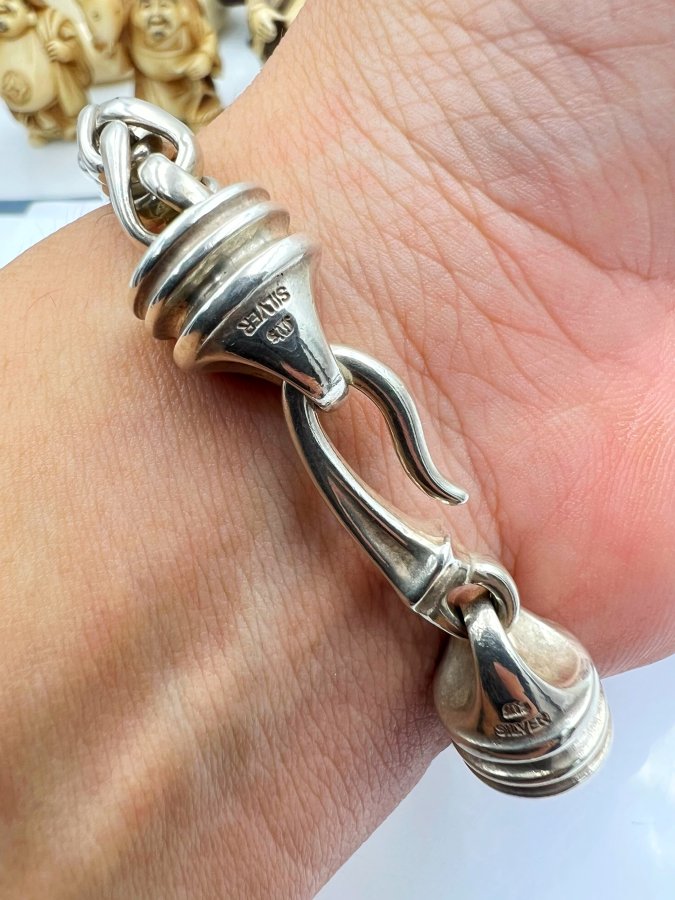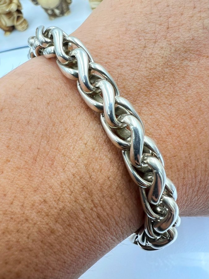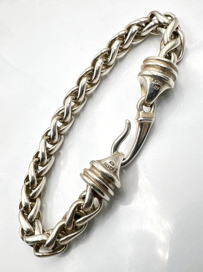 Lắc bạc 925 hiệu Ms Collection mới tinh phôm bự kiểu dây xương cá khóa gài rất đẹp, dây dài 21cm - ngang 9.5mm, nặng 52.12gram (13.9 chỉ), giao thông 6tr6❤️ Thiên 0923.12.6789