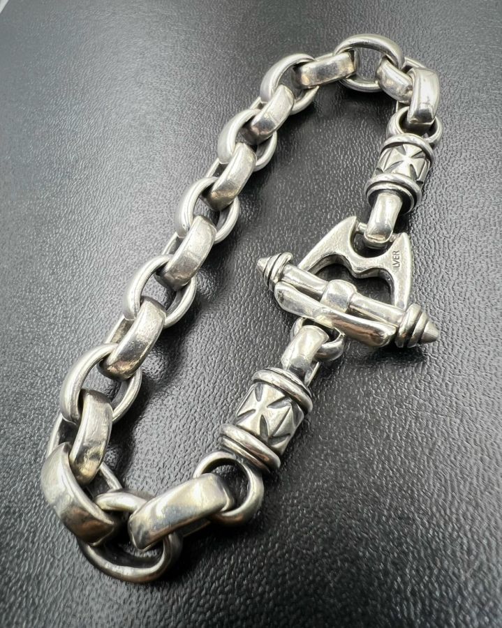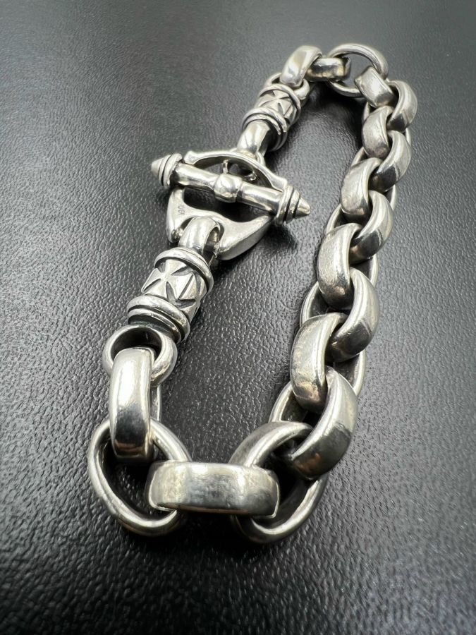 Lắc bạc 925 Nhật hiệu Tochiko hoa văn sắc nét rất đẹp, phôm bự, size 21mm - ngang 11mm, nặng 67.41gram (17.98 chỉ)