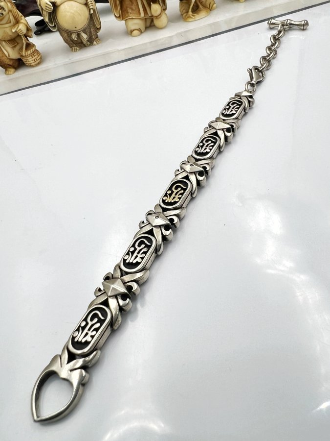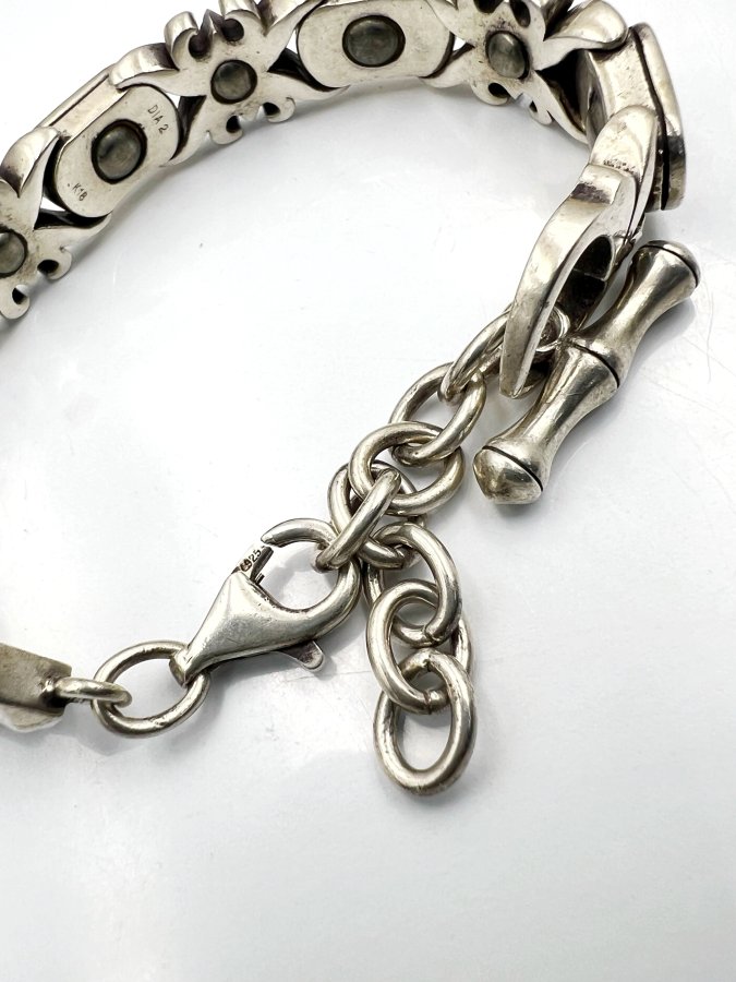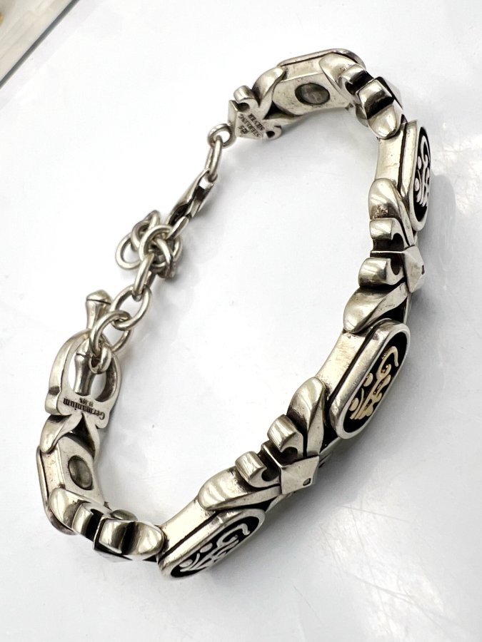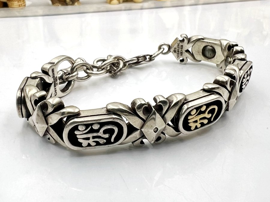 Lắc bạc 925 Nhật ốp logo vàng 18k hiệu Yuuki mới tinh phôm bự hoa văn sắc nét đính 2v soàn thiên nhiên rất đẹp, mặt trong đính đá germanium điều hòa huyết áp, dây dài 23cm (thu ngắn đc) - ngang 14mm, nặng 66.1gram (17.63 chỉ), giao thông 7tr2❤️