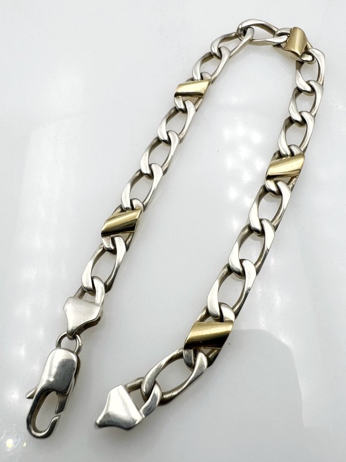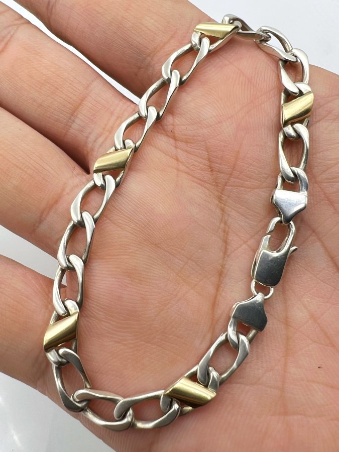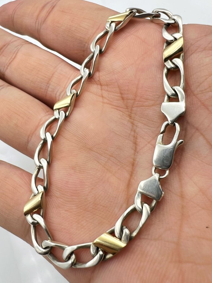 Lắc bạc 925 ốp vàng 18k hiệu Tiffany mới tinh hoa văn sắc nét rất đẹp, dây dài 19.5cm - ngang 6.5mm, nặng 11.34gram (3.02 chỉ), giao thông 7tr2❤️ Thiên 0923.12.6789