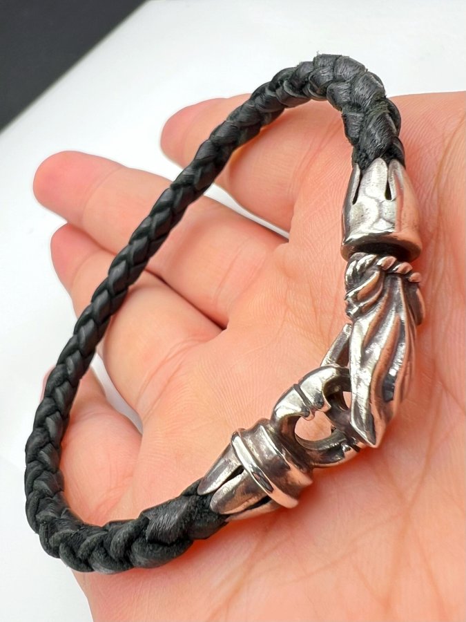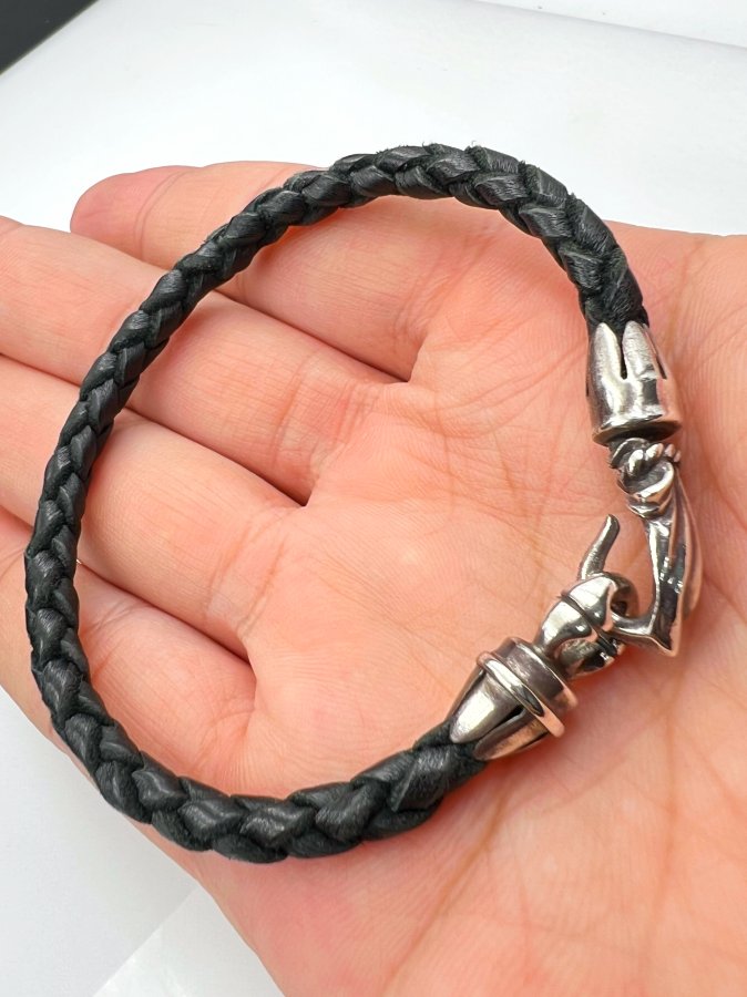 Lắc da phối bạc 925 hiệu F.A.L hoa văn sắc nét khóa gài rất đẹp, dây dài 20cm - bản ngang 6mm, nặng 11.61gram (3.1 chỉ), giao thông 3tr3❤️ Thiên 0923.12.6789