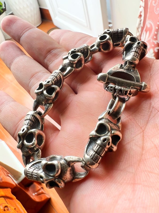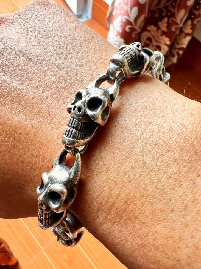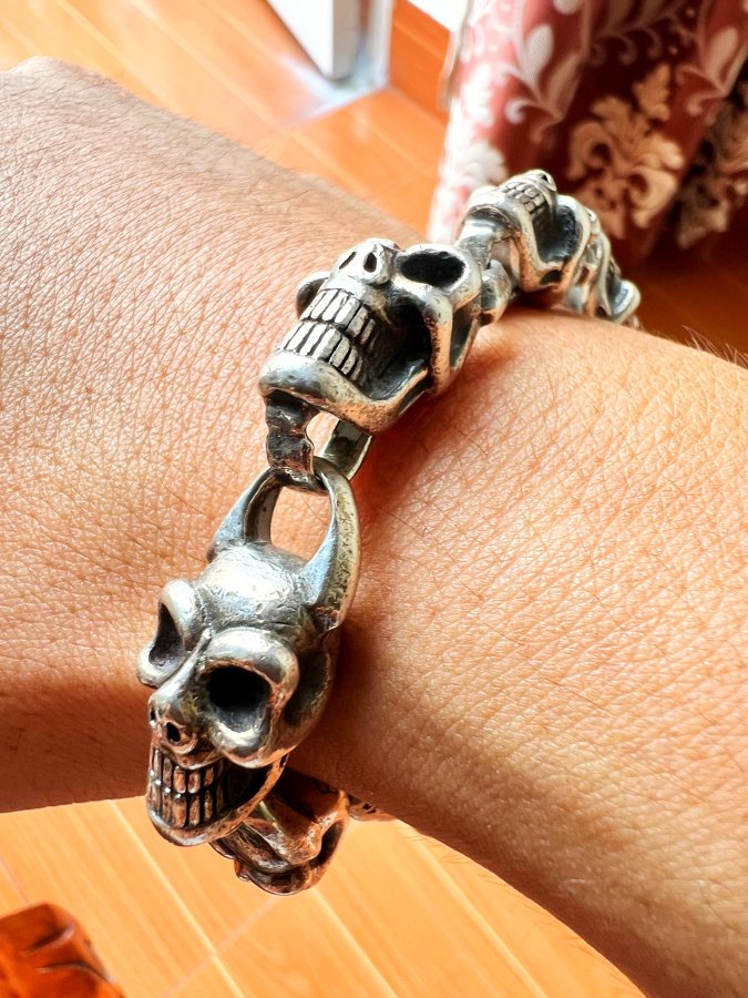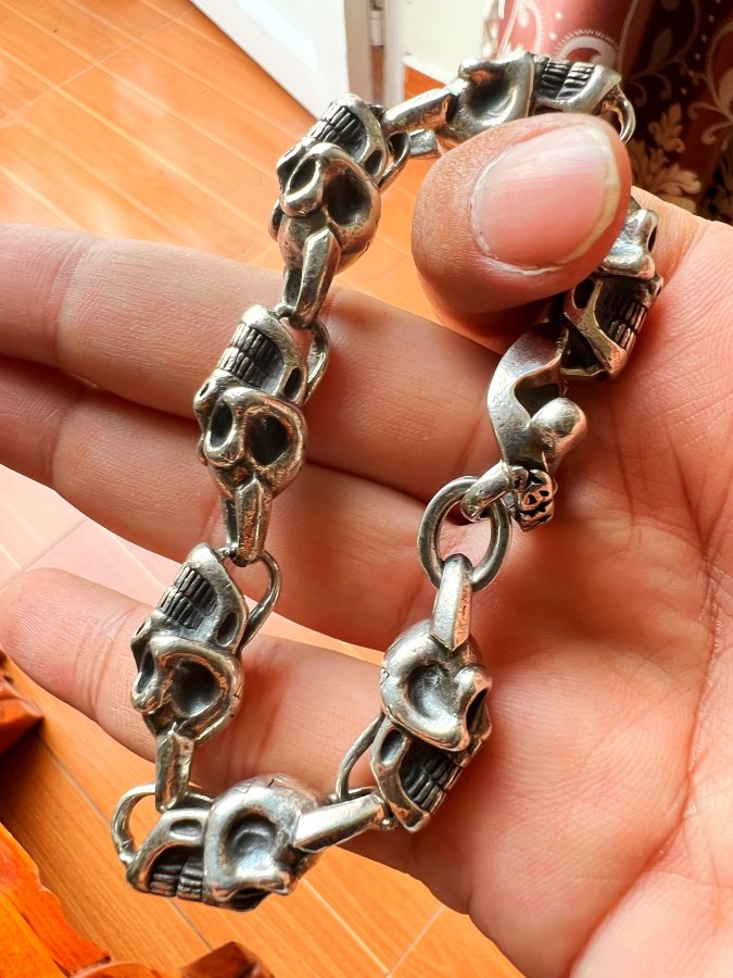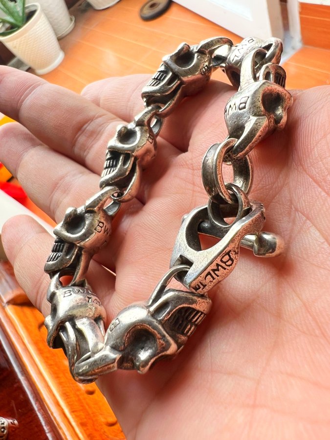 Lắc đầu lâu bạc 925 hiệu BWL phôm bự hoa văn sắc nét khóa gài rất đẹp, dây dài 22cm - bản ngang 12mm, mặt khóa 18mm, nặng 113.2gram (30.2 chỉ), giao thông 12tr5❤️ Thiên 0923.12.6789