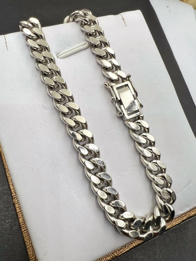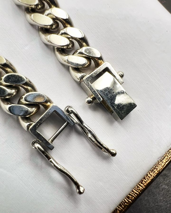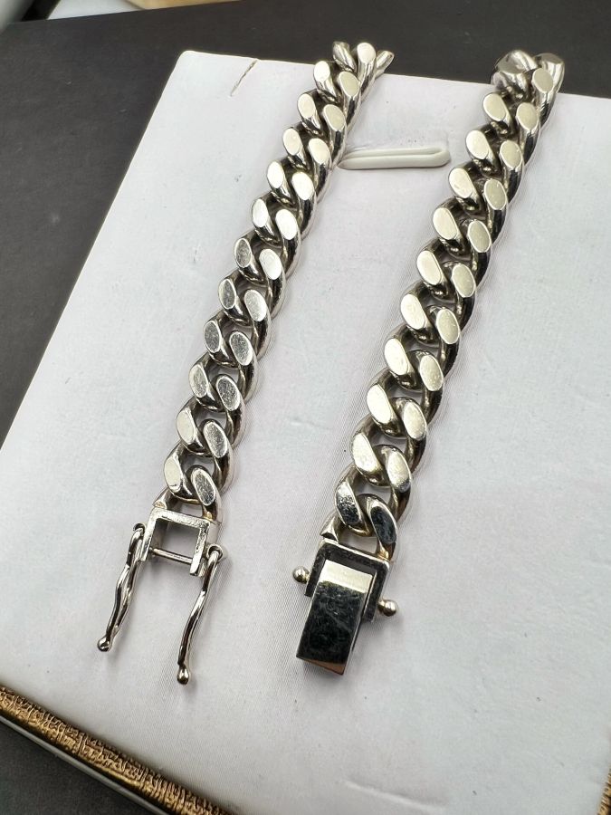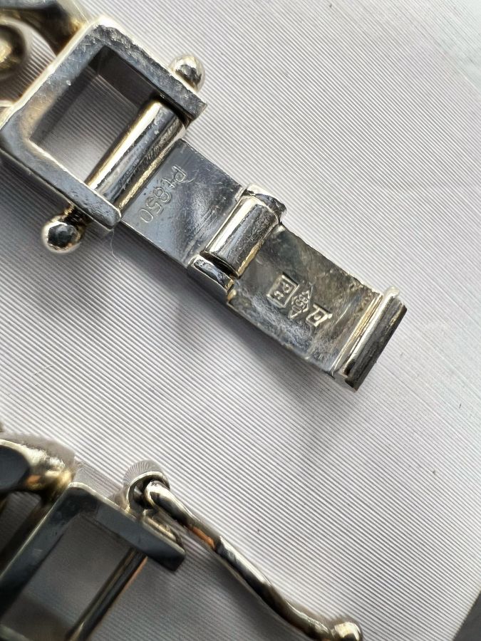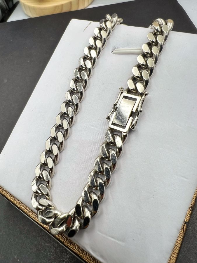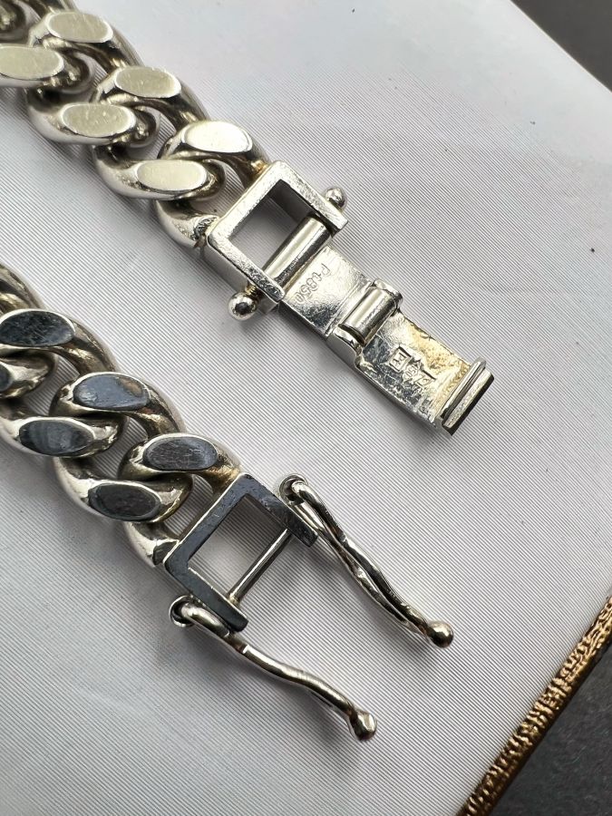 Lắc platin 850 Nhật mới tinh kiểu dây khoen lật khóa hộp gài chắc chắn rất đẹp, phôm bự, dây dài 20.5cm - bản ngang 7mm, nặng 50.45gram (13.45 chỉ)