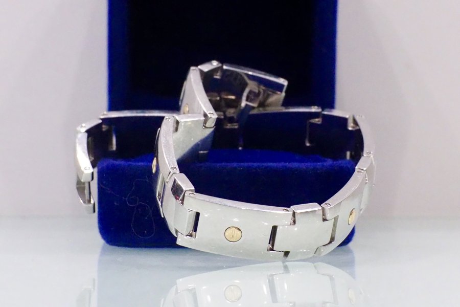 👍Tình trạng rất đẹp , model mạnh mẻ , chất liệu thép siêu bền , các núm điễm vàng 14k rất đẹp và cá tính , lên tay ôm đẹp dễ thương