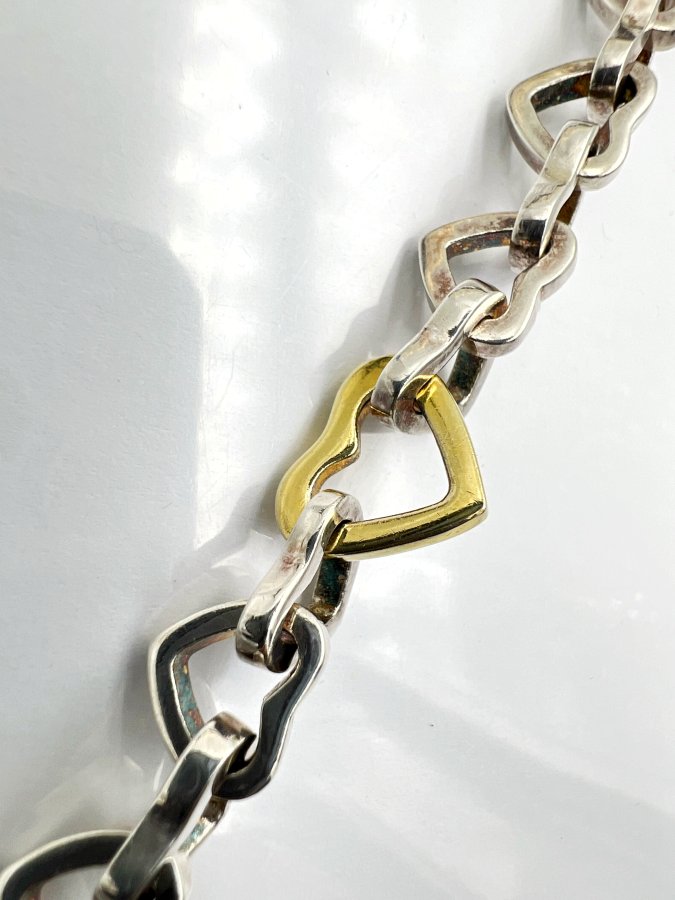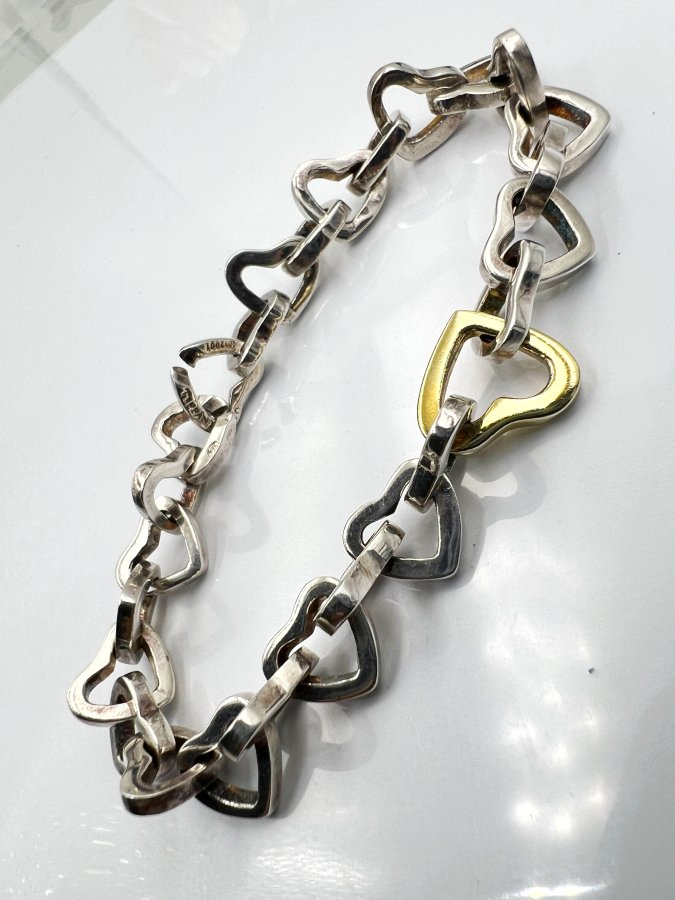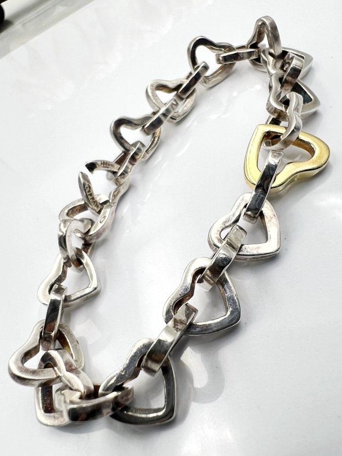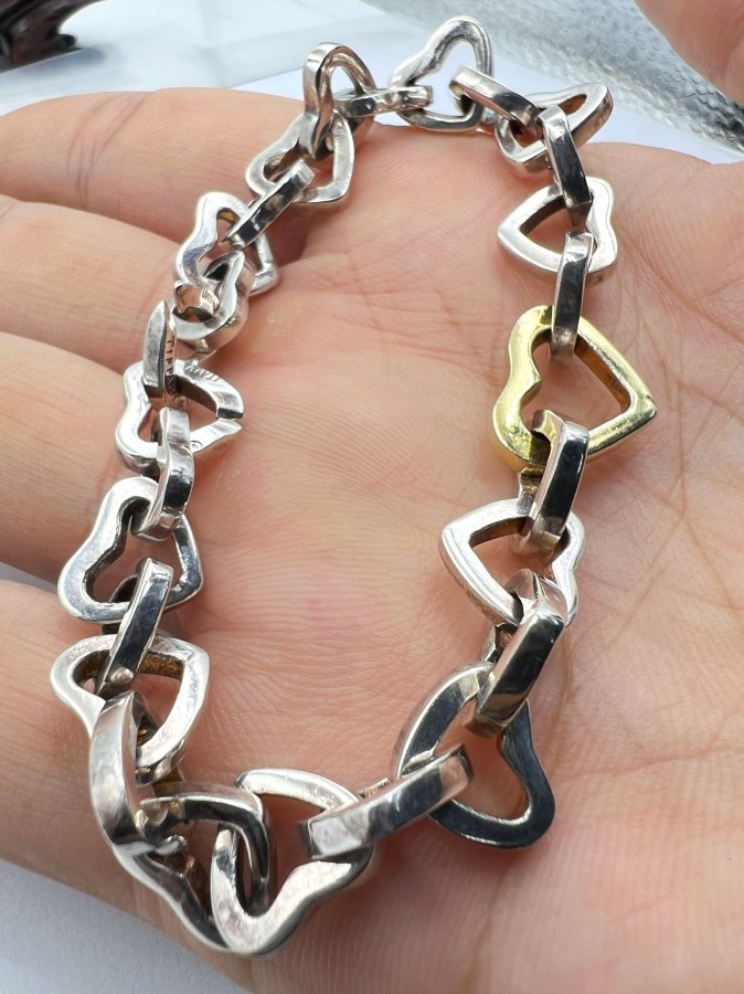 Lắc trái tim bạc 925 hiệu Tiffany mặt trái tim lake vàng 18k mới tinh hoa văn sắc nét khóa gài rất đẹp, dây dài 19cm - bản ngang 10-12mm, nặng 26.88gram (7.17 chỉ), giao thông 4tr5❤️ Thiên 0923.12.6789