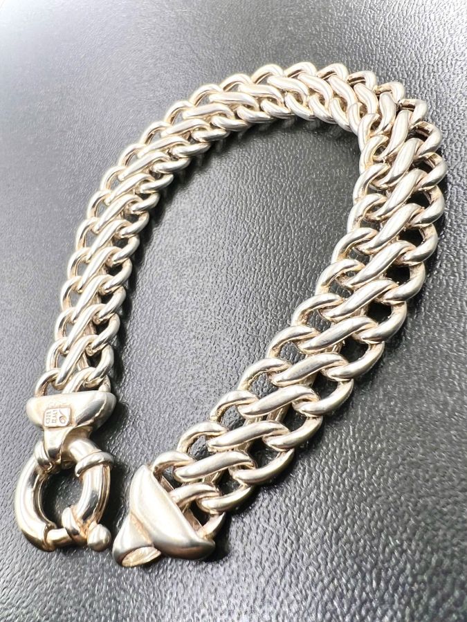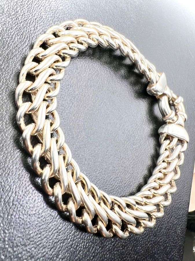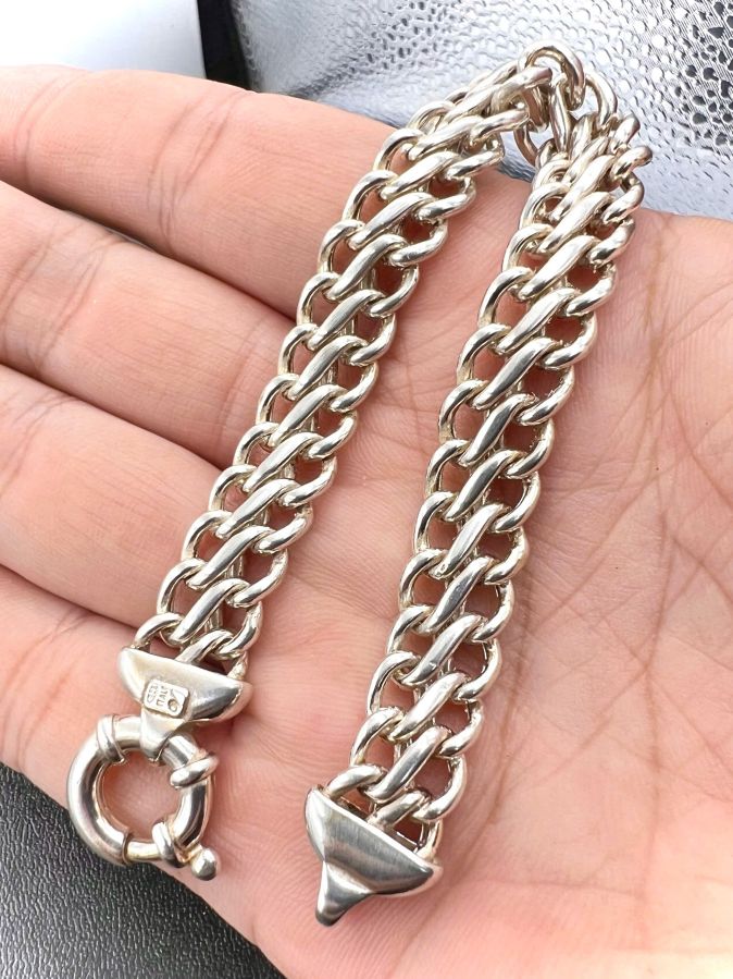 Lắc xương cá bạc 925 italy mới tinh hoa văn sắc nét khóa tròn rất đẹp, dây dài 19cm - bản ngang 11mm, Cân nặng 21.54gram (5.744 chỉ)
