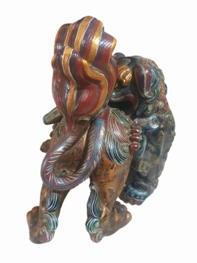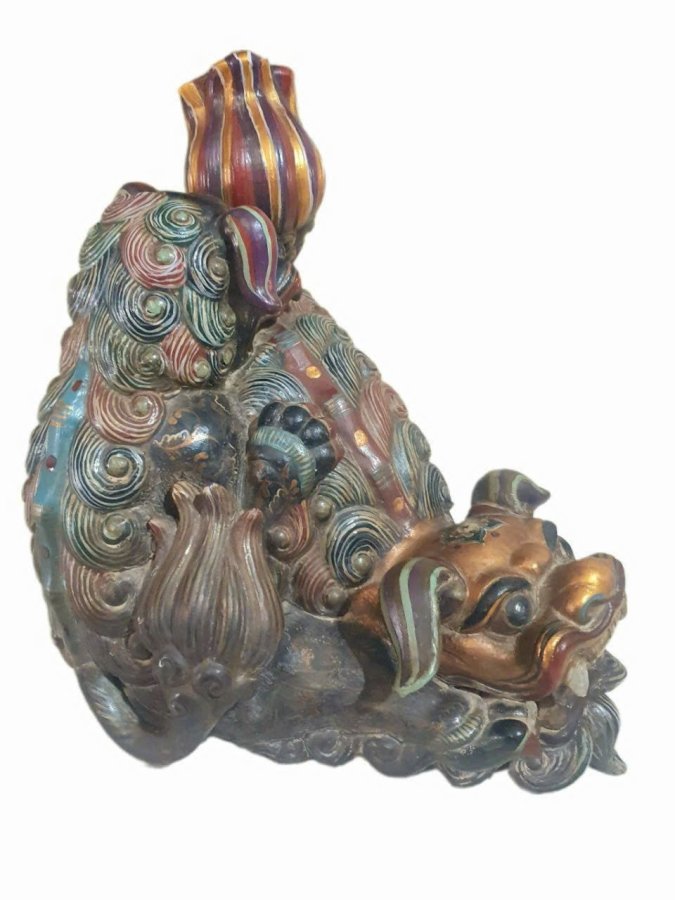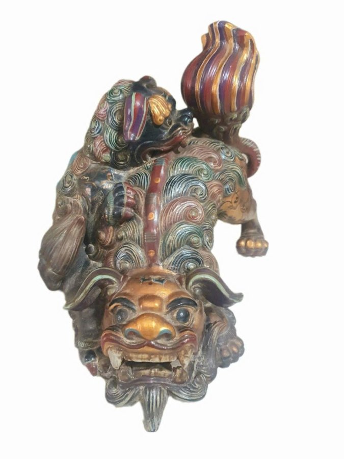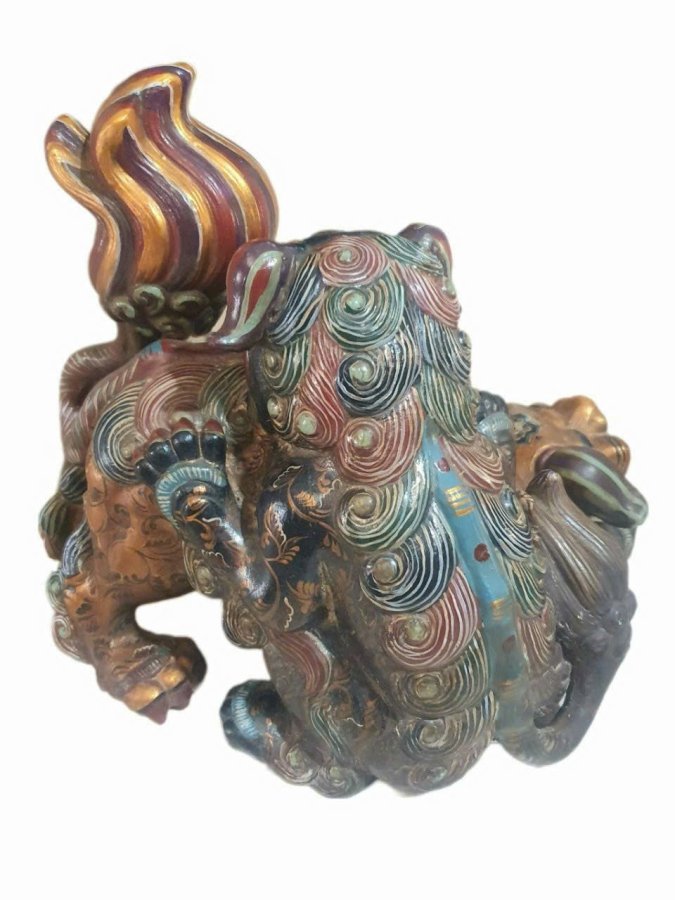 Lân giáo tử độc đáo,thần thái.Cao 30cm*35cm*27cm.Sơn son thiếp vàng!