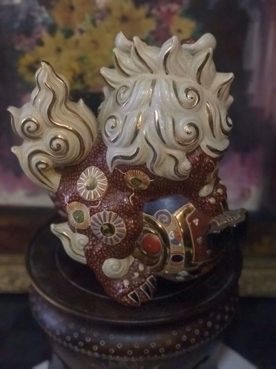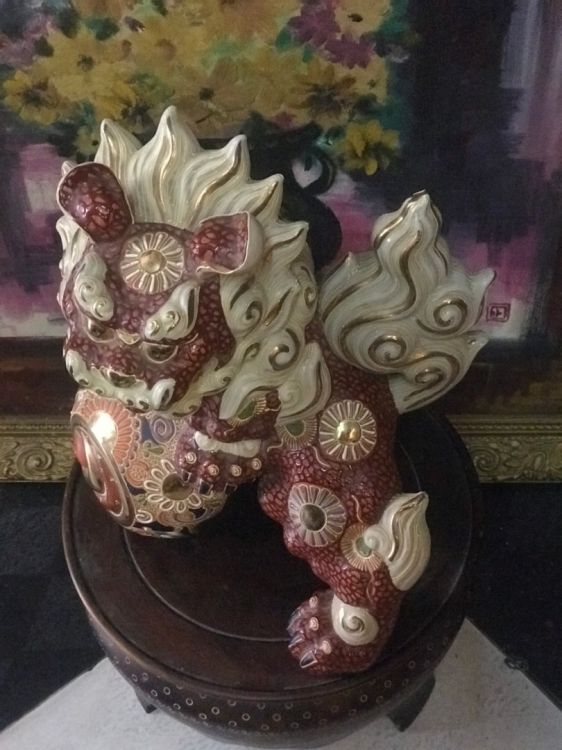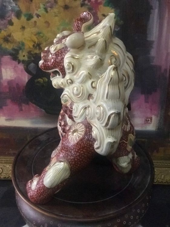 Lân sứ đẹp hiếm,chuẩn cổ. Hiệu đề 2 chữ.Cao 28cm. Ngang 24cm.