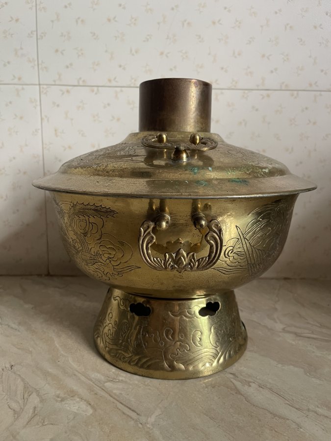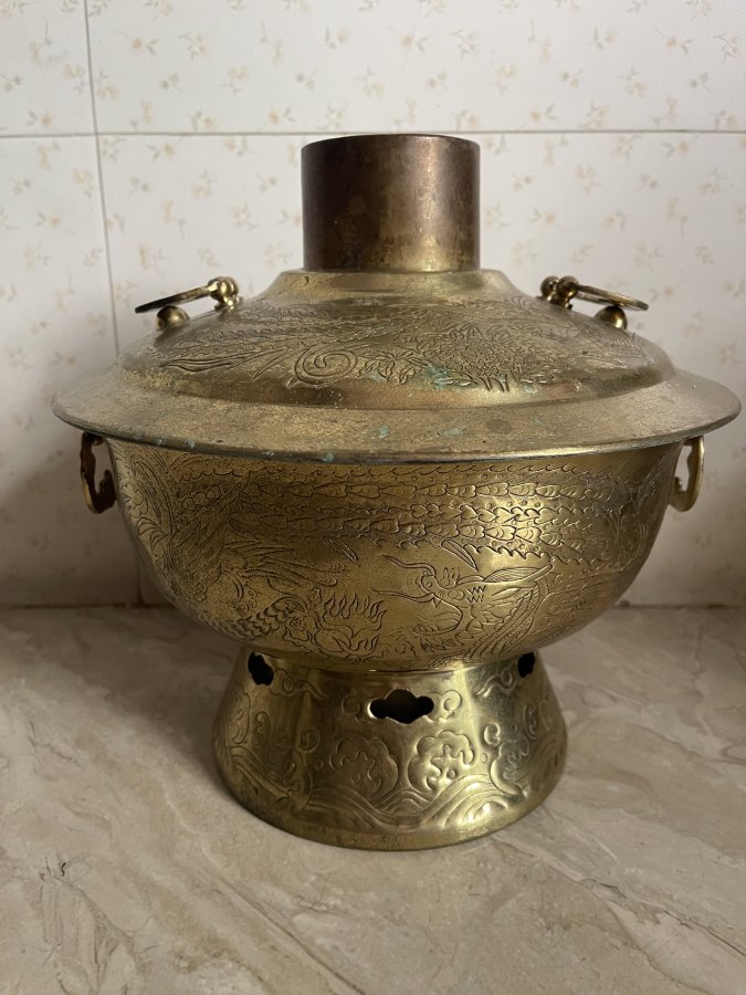 Cù lao than đồng xưa chạm tay toàn thân rất đẹp và tỉ mỉ , đồng dày chắc chắn Bên trong lacke bạc Size to cao 28 x ngang 28cm ( 5-6 người ăn vô tư ) decor hay sử dụng rất vip lh 0938968896 zalo or call