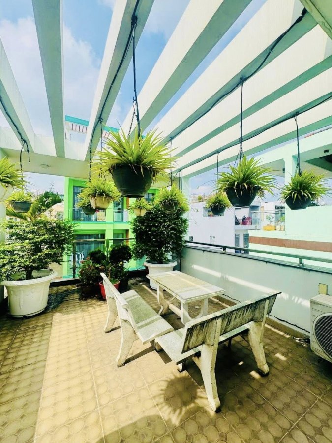 Kết cấu trệt, 2 lầu, sân thượng trước sau gồm 5 ngủ, 5Vs