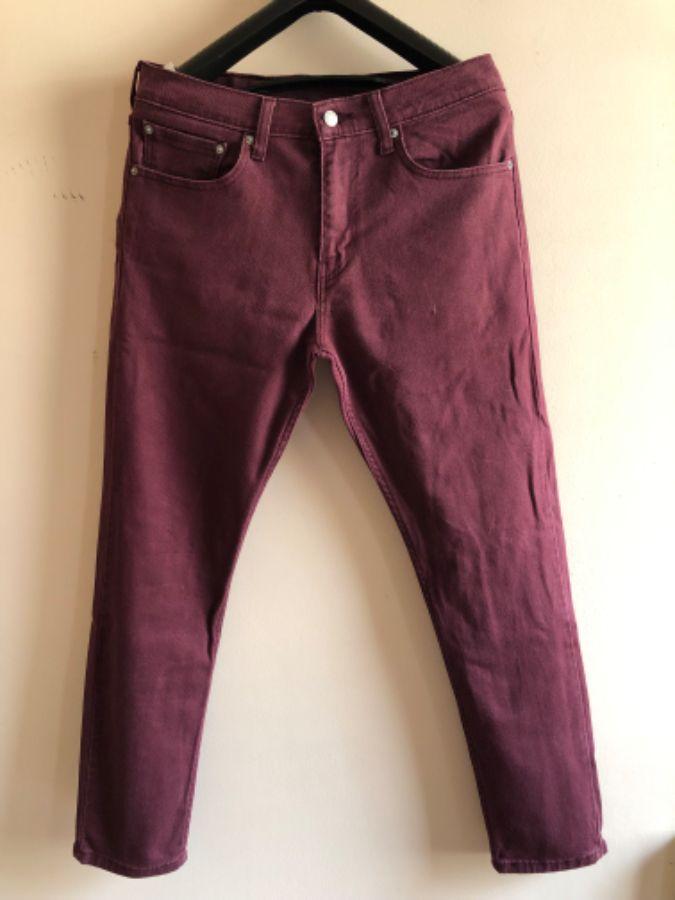 Levi s 512 size 32 new 95% made in banglades. Chất jeans cực kì mềm mịn và rất dầy dặn. Co dãn. Bụng 84-86cm. Dài 100cm. Ống 16cm. Phom ôm như người mẫu hình bên dưới, màu đỏ ******* cực đẹp. Gia 400k