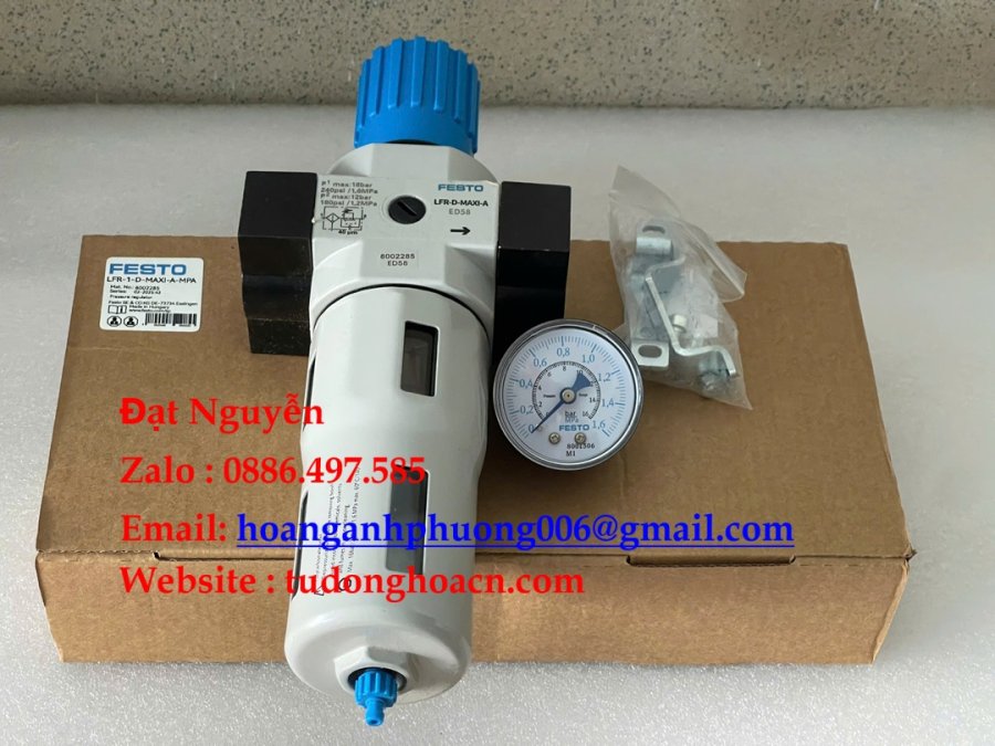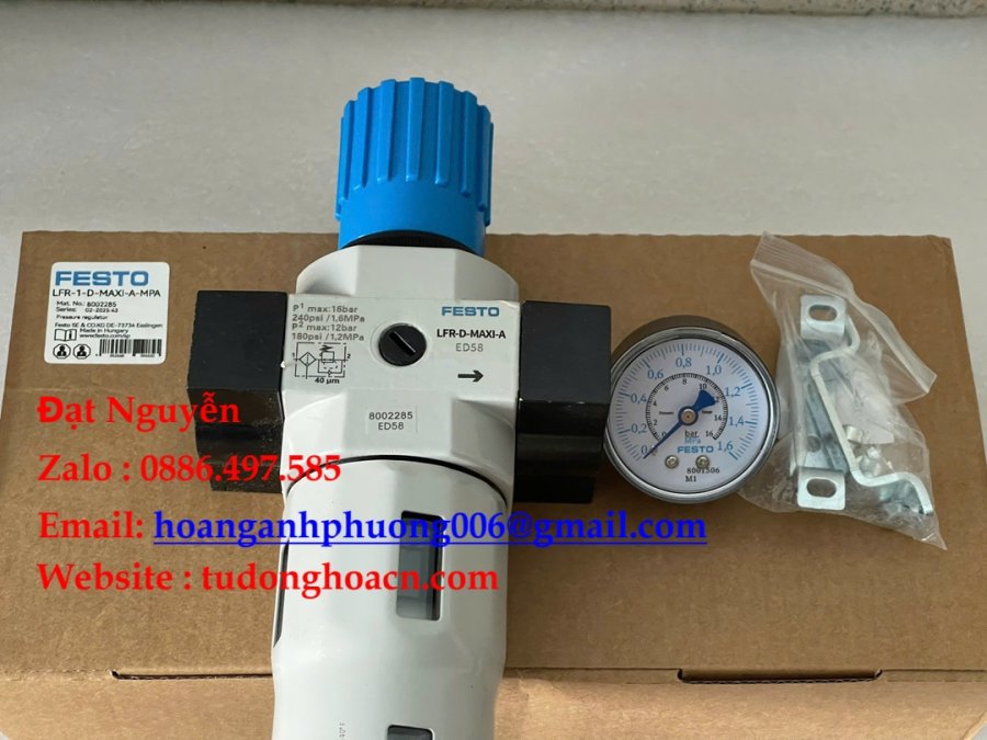 LFR‑1‑D‑MAXI‑A‑MPA – Filter Regulator Festo cỡ Maxi, lọc 40 µm, tích hợp đồng hồ & xả tự động