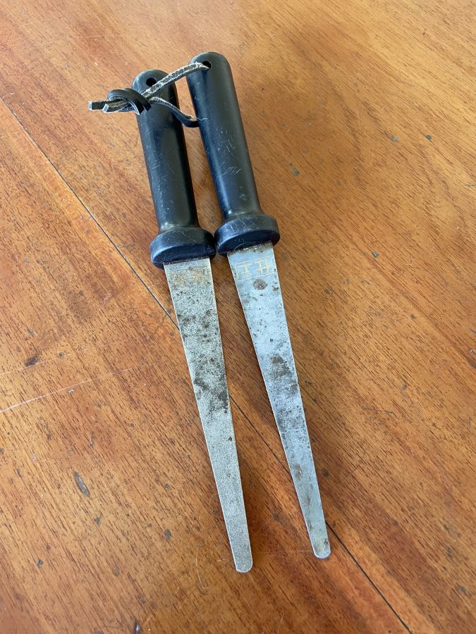 Bán cặp liếc dao kim cương Nhật còn khá đẹp. Dụng cụ còn rất tốt, tuy có vài chỗ ảnh hưởng của kho bai. Liếc dao có bên thô và bên mịn